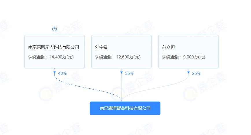 通过股权穿刺,该公司由南京康海无人机科技有限公司以及两位自然人共同出资成立。