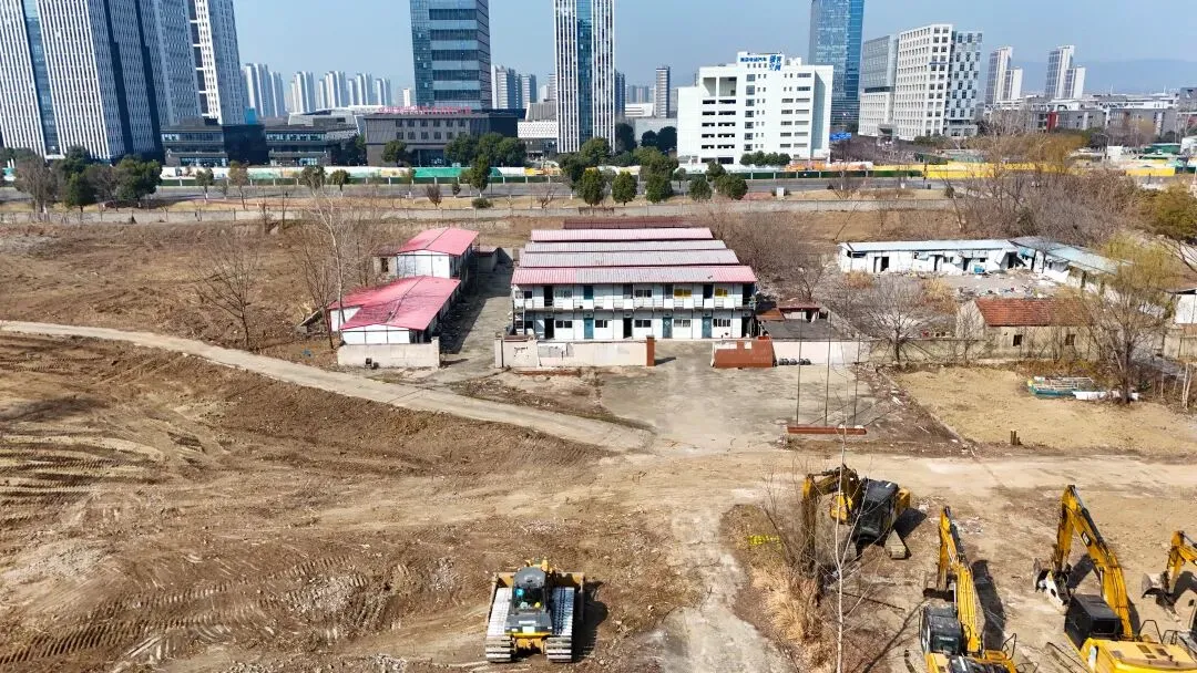 项目以3.37亿元总价被南京康海智谷科技有限公司通过法拍途径拿下,从最新航拍图来看,地块之上设备进场,土地已重新平整,这也就意味着搁置16年之久的超级地块,即将起死回生。