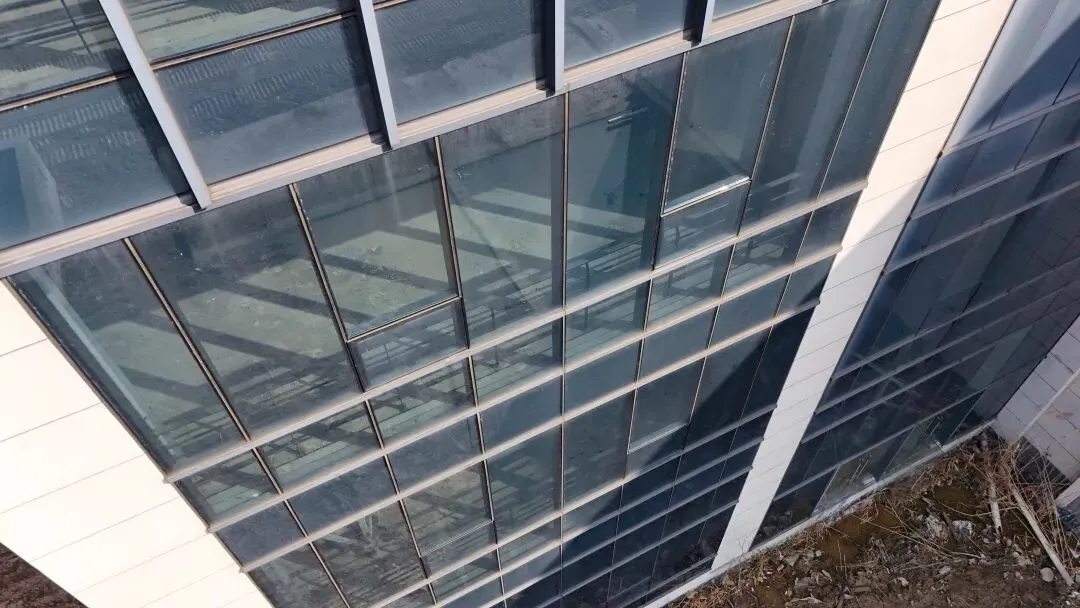北侧园区内两栋停滞大楼外立面已经施工完成。