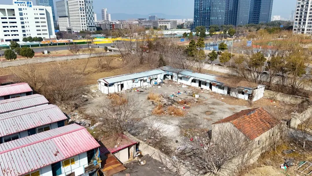 园区内还有此前施工遗留的临时工棚,目前也是破败不堪。