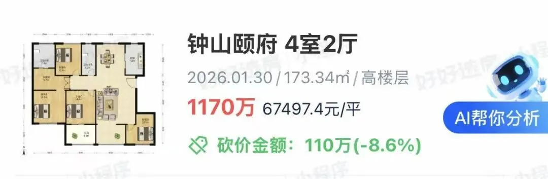要知道,同年仁恒江湾天成收官,限价4.5万/㎡!可以说钟山颐府当时的价格全面秒杀湾四。时隔9年,链家网上有多套二手房成交,最新成交的是一套建面约173.34㎡4室2厅房源,成交总价1170万元,成交单价约67497.4元/㎡,这也是该小区近两年来成交单价的新高。要知道,当下南京80%的二手房都在降价,而钟山颐府小区房价还能逆势上涨,实在令人惊讶!天花板级地段+低密小区!业主惜售!