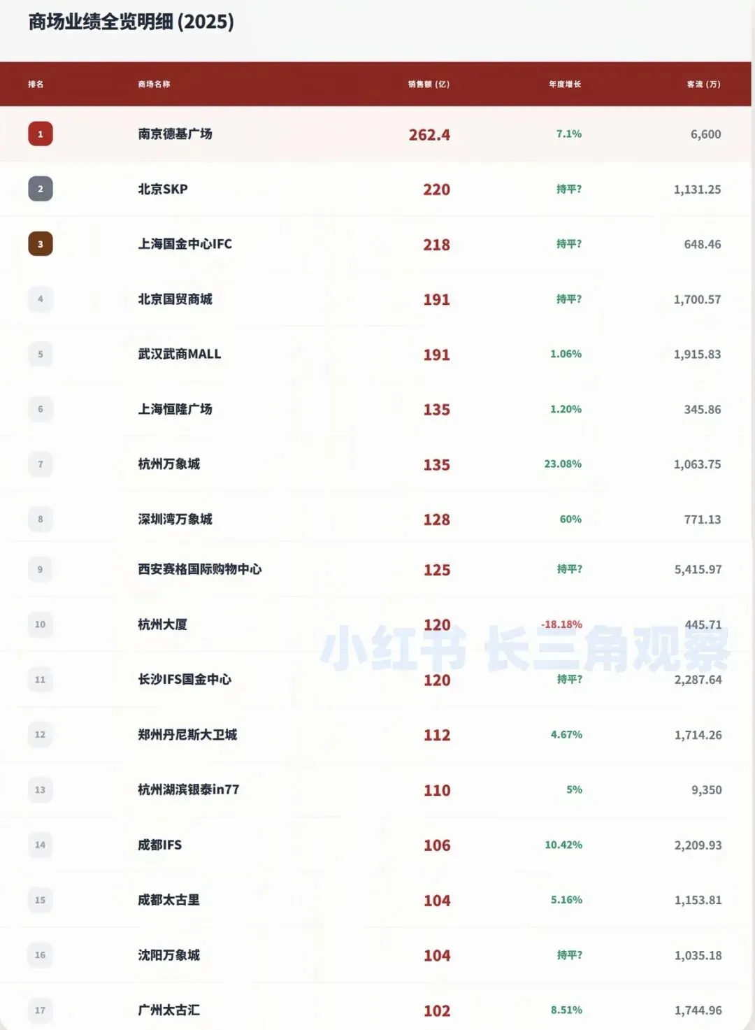 还挺不可思议的?有网友做了这么一张图,2025年突破100亿的商场,大概有17家,德基广场碾压北京SKP,其客流更是以6600万断层式第一。