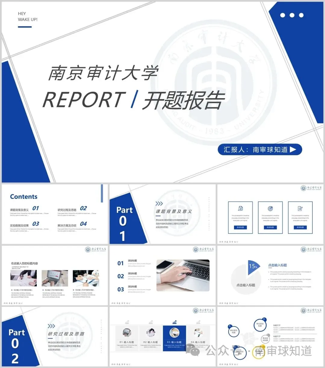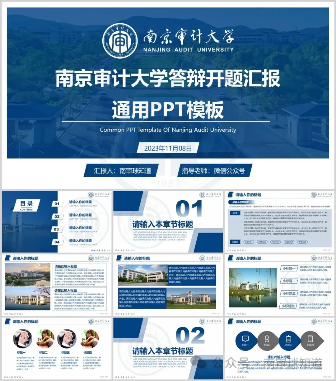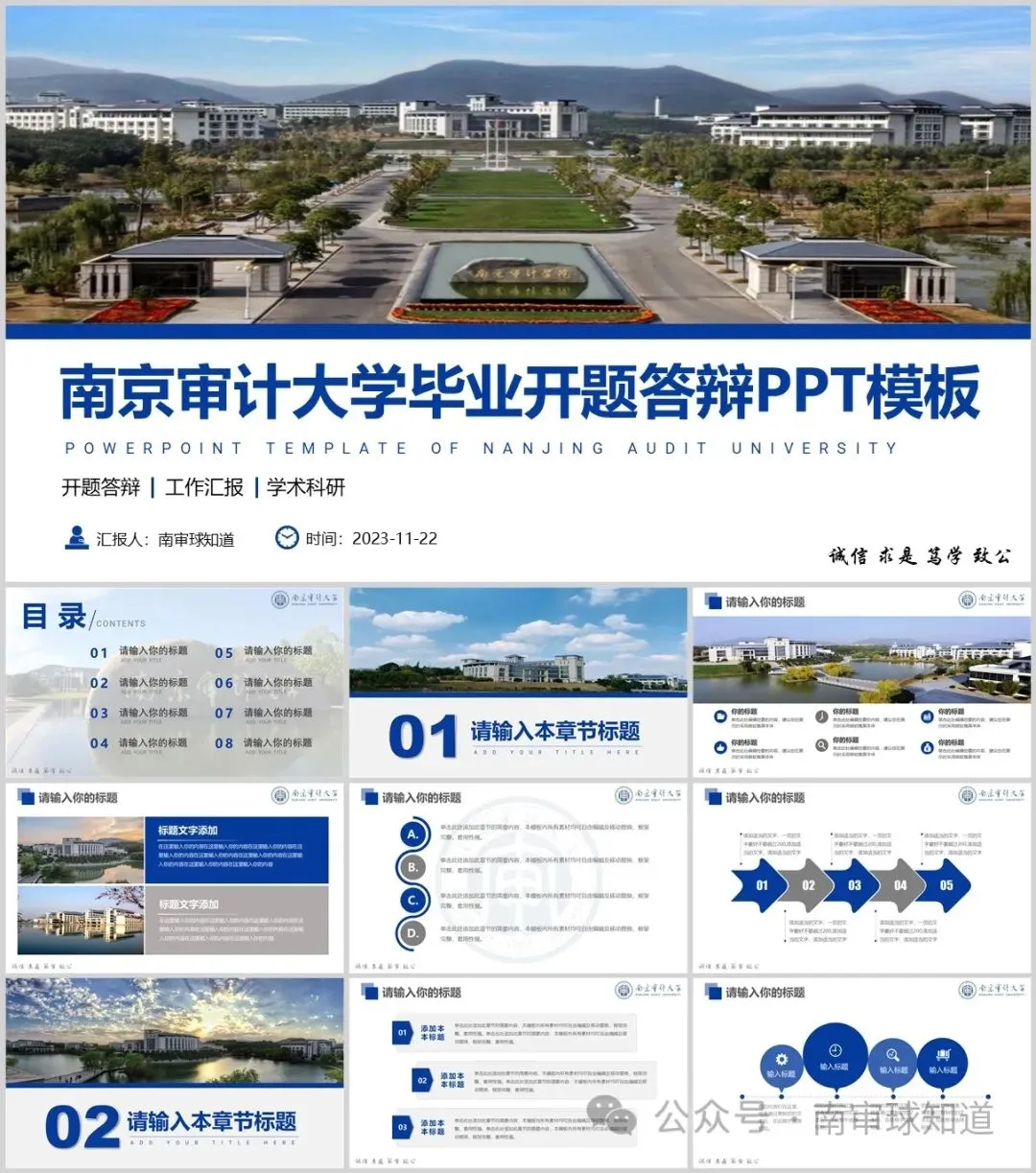 “南京审计大学”专属PPT模板来啦,本硕博汇报答辩必备!