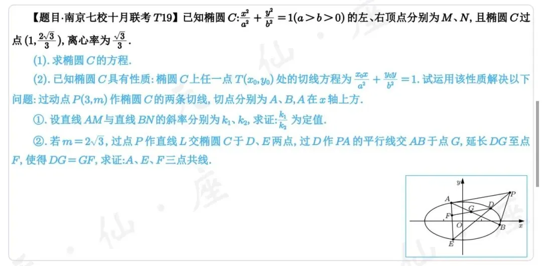 今天分享调和平行中点定理以及2025年南京七校十月联考的第十九题。