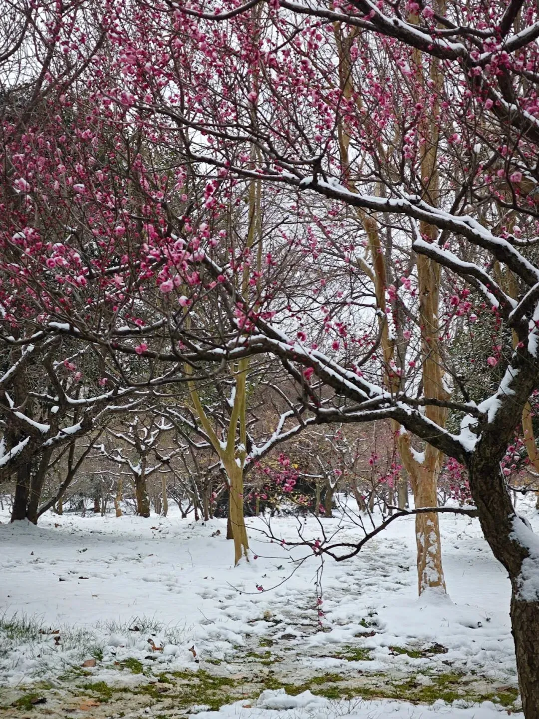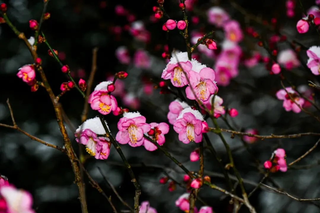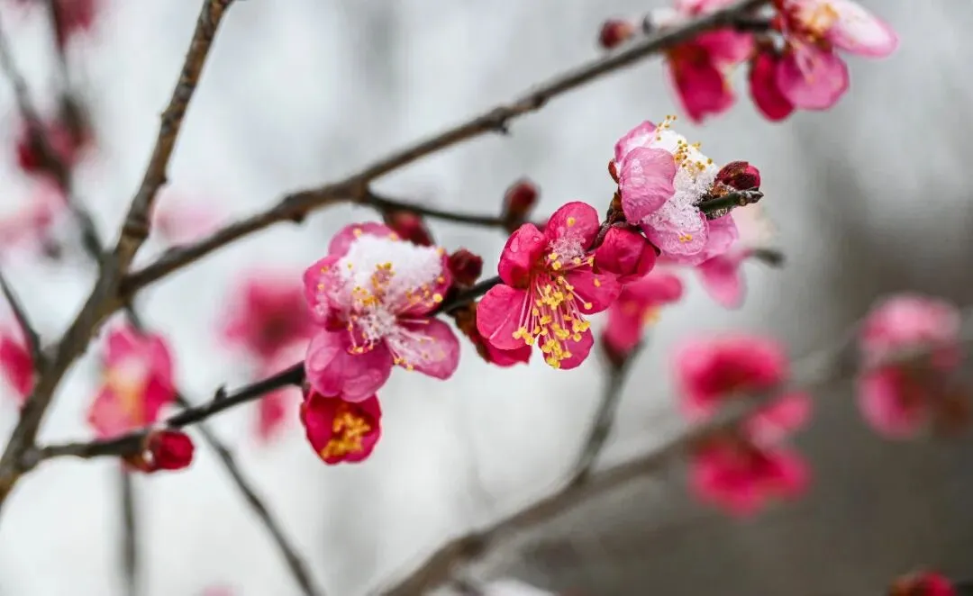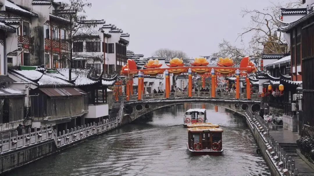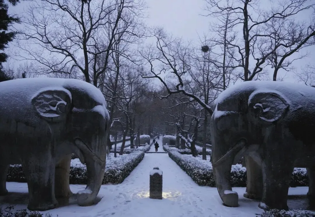 当寒风携着江南的温润,漫过长江岸线,南京便被一场雪轻轻唤醒。没有北方暴雪的凌厉,只有细碎的雪绒,慢悠悠地铺展,将六朝古都的千年底蕴,裹进一片素白清欢里。墙角枝桠间,几株红梅缀雪绽放,嫩蕊凝霜、暗香浮动,与明孝陵的石象共藏岁月,同夫子庙的红灯相映雪光,陪瞻园的飞檐共载清寒,伴紫金山的峰峦同覆银霜,一场雪、一枝梅,让金陵美成了未干的水墨丹青。