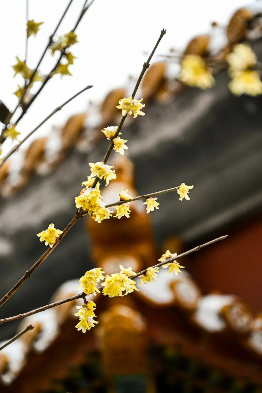 墙畔蜡梅吐金