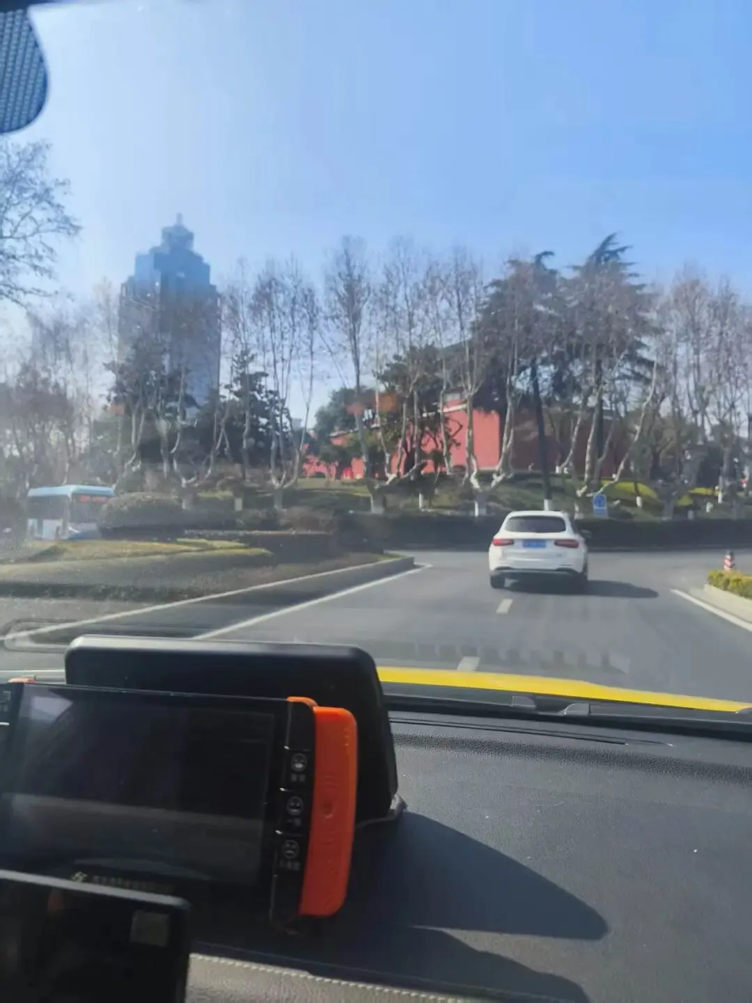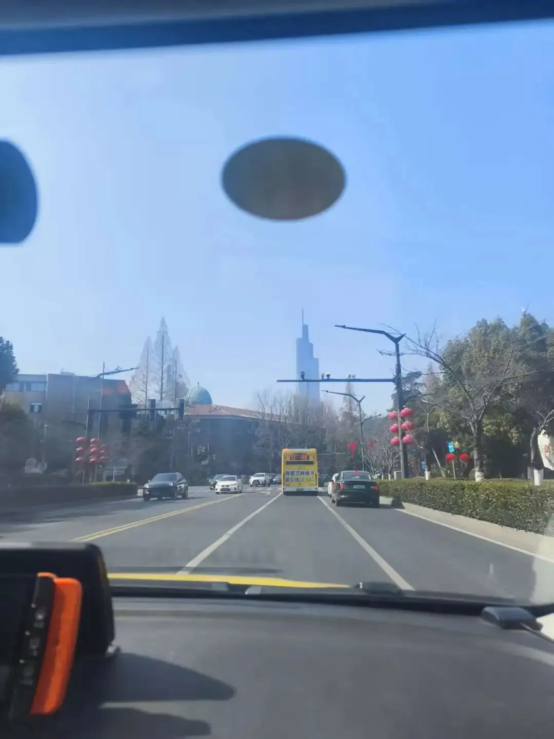 在出租车上经过了一些景点以及标志性建筑物,这张是牛哥在前座拍到的紫峰大厦🏢。当时还路过了南京鼓楼, 我特别想拍到鼓楼,一路人拍了一堆,最后选了以下这张牛哥拍的比较清楚的一张照片,放到了游记上。