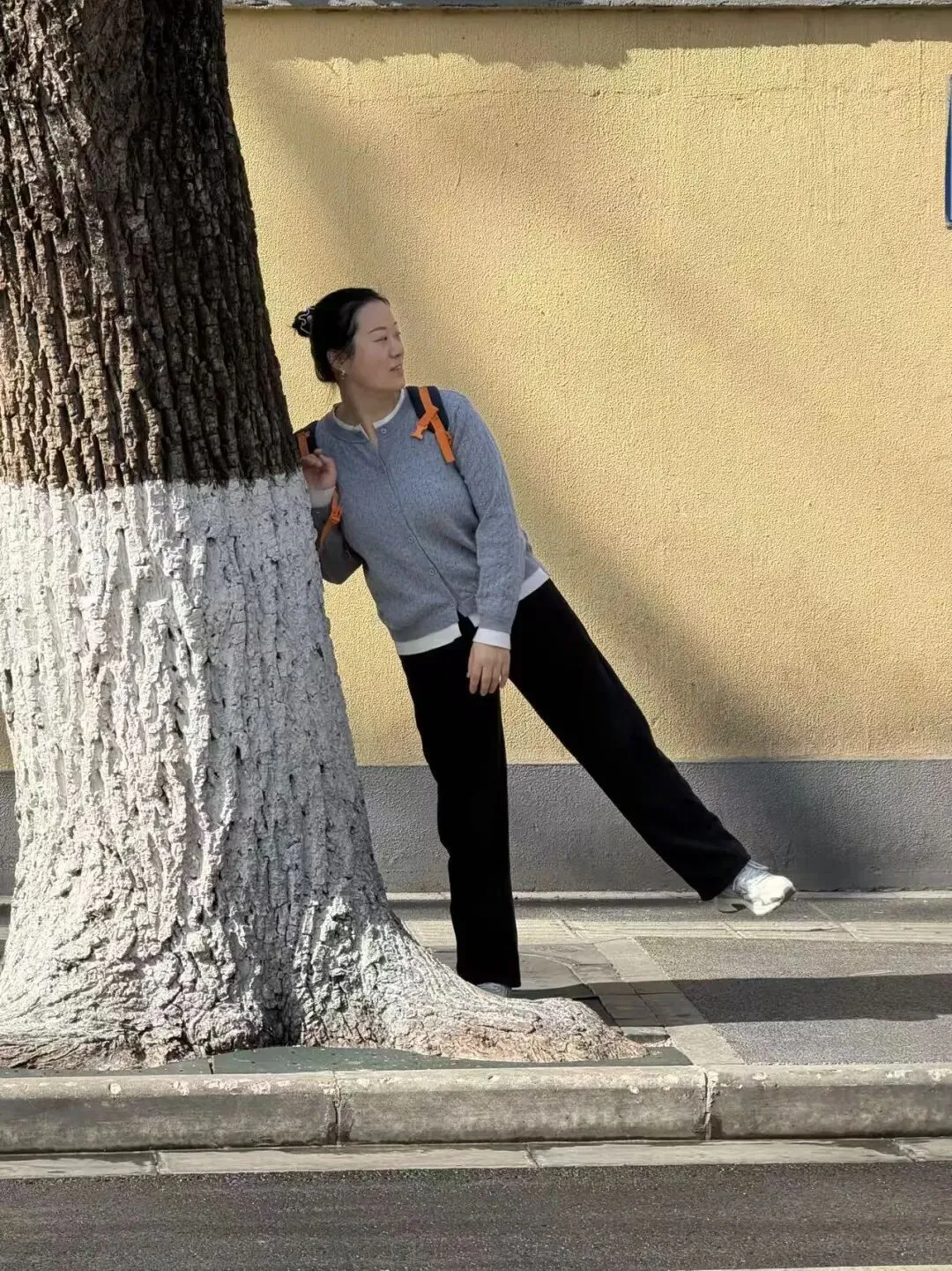 到了颐和路的深处,人渐渐多了起来,有许多人请了摄影师,教导人们摆POSE,阿梅认为这里人很多一定是个网红打卡地 ,于是她也跑到马路对面,把大任(手机)交给了我帮她拍照。以上这张照片是阿梅与自己的老Baby批完之后的成果。