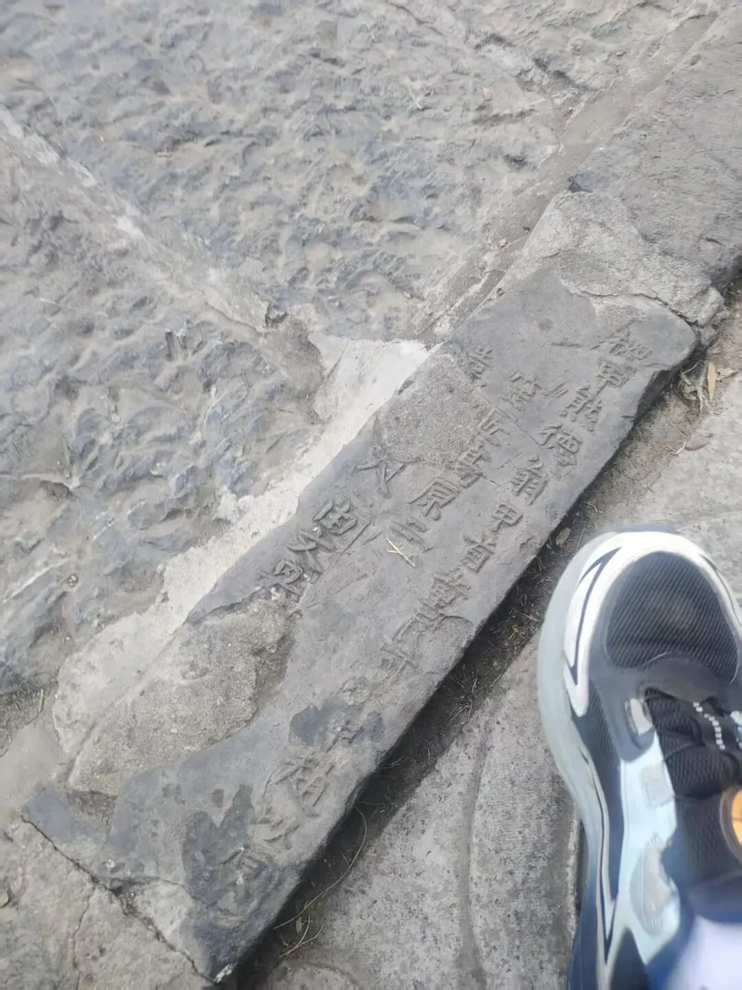 阿梅进了景区左拐进入了厕所🚾,随后牛哥也进去了,我和老徐在厕所外面等待时,发现地上有块带字的石砖,当然不止这一块被铺在地上被人踩踏,还有一些,因为这是我第一个看见的带字城砖。🤩🤩🤩