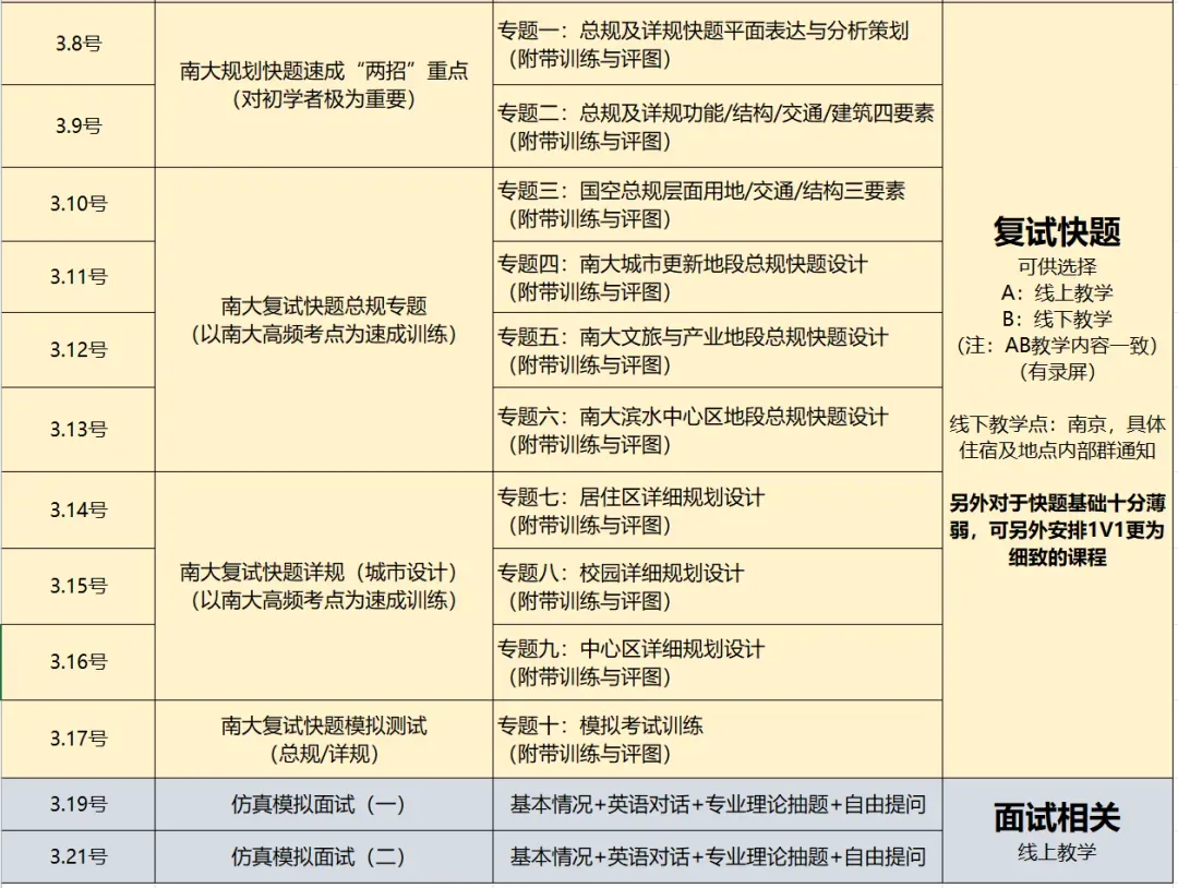 (线下点:南京,如快题基础薄弱,可1对1安排针对性课程)