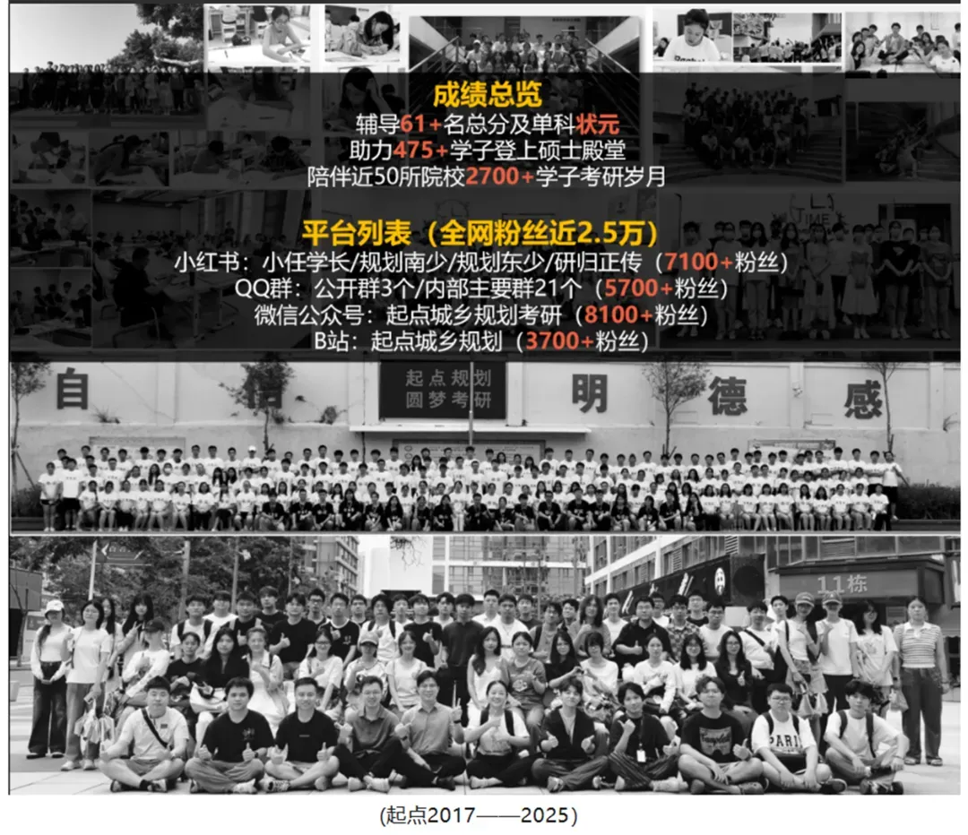 小红书可搜”小任学长/规划南少/规划东少“,B站搜”起点城乡规划考研“