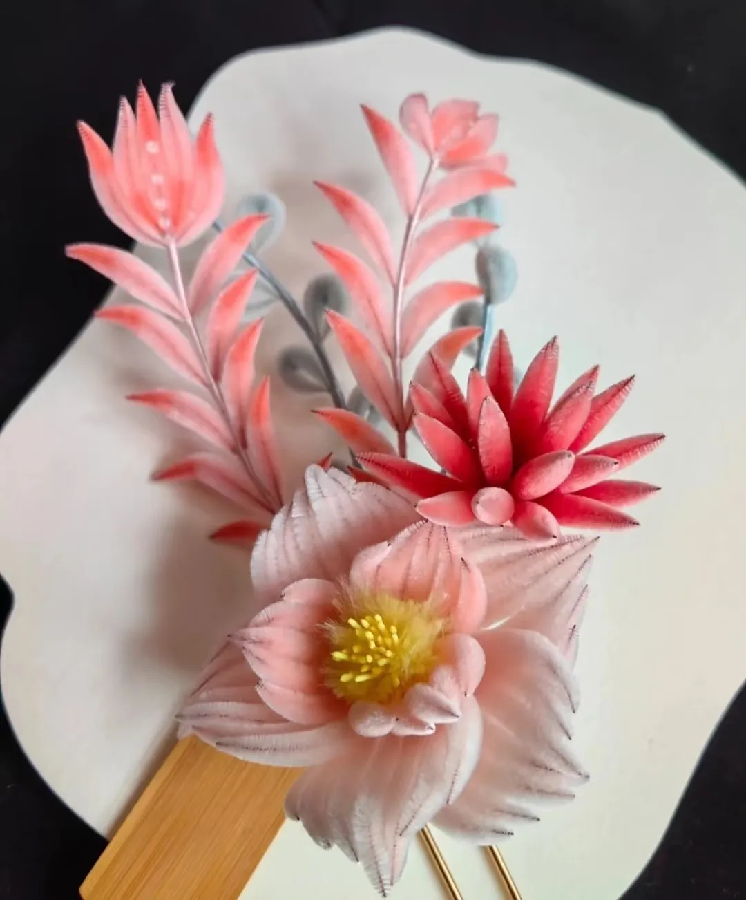 说到绒花,南京绒花这一传统技艺始于唐朝,在明清时期达到鼎盛,曾是专供皇室的贡品。绒花匠人精心选取优质蚕丝,将其染上鲜艳色彩,再以黄铜丝为材料,进行勾条、打尖、传花等复杂操作。整个制作过程共有十道精细工序,每一道工序都需要匠人的专注与耐心,最终让原本普通的蚕丝“活”了起来。