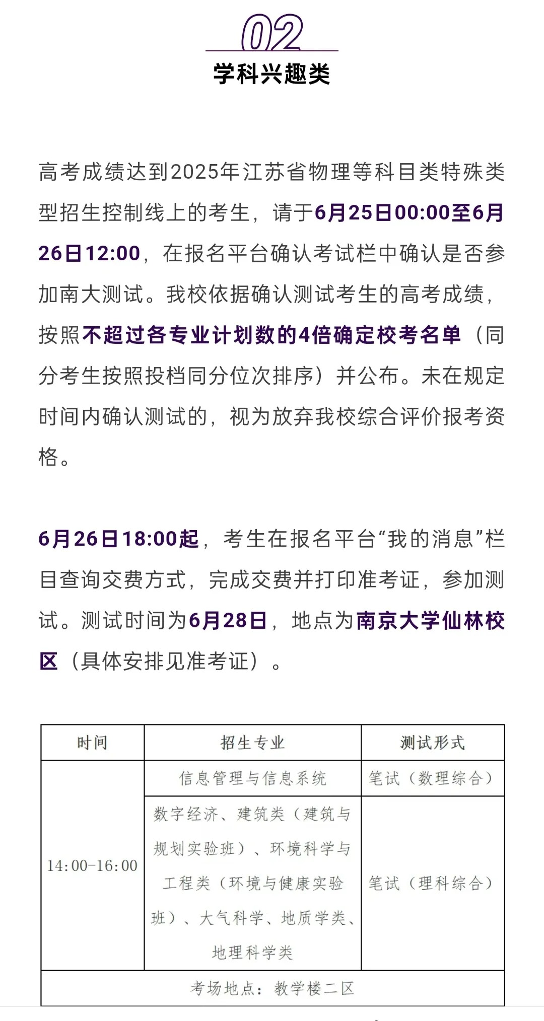 2025南京大学综评校测安排及考试情况