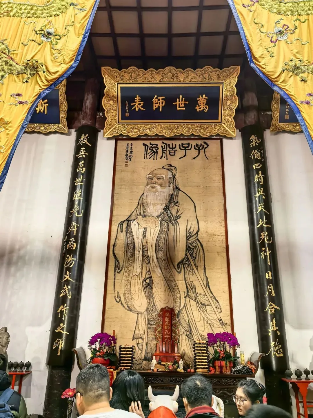 孔子画像。这是全国最大的孔子画像。高6.5米、宽3.15米。