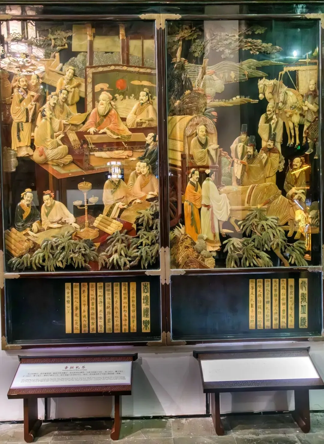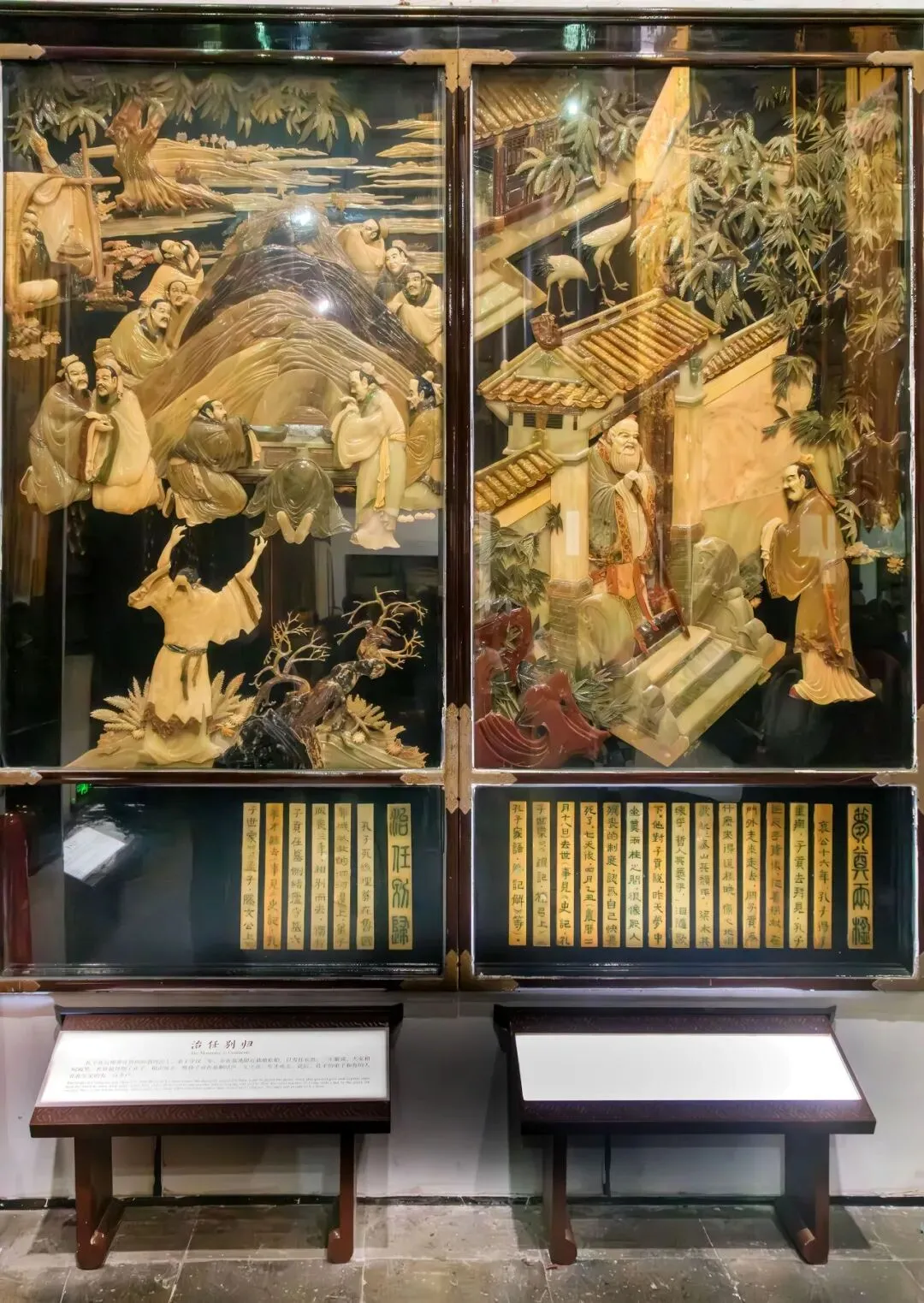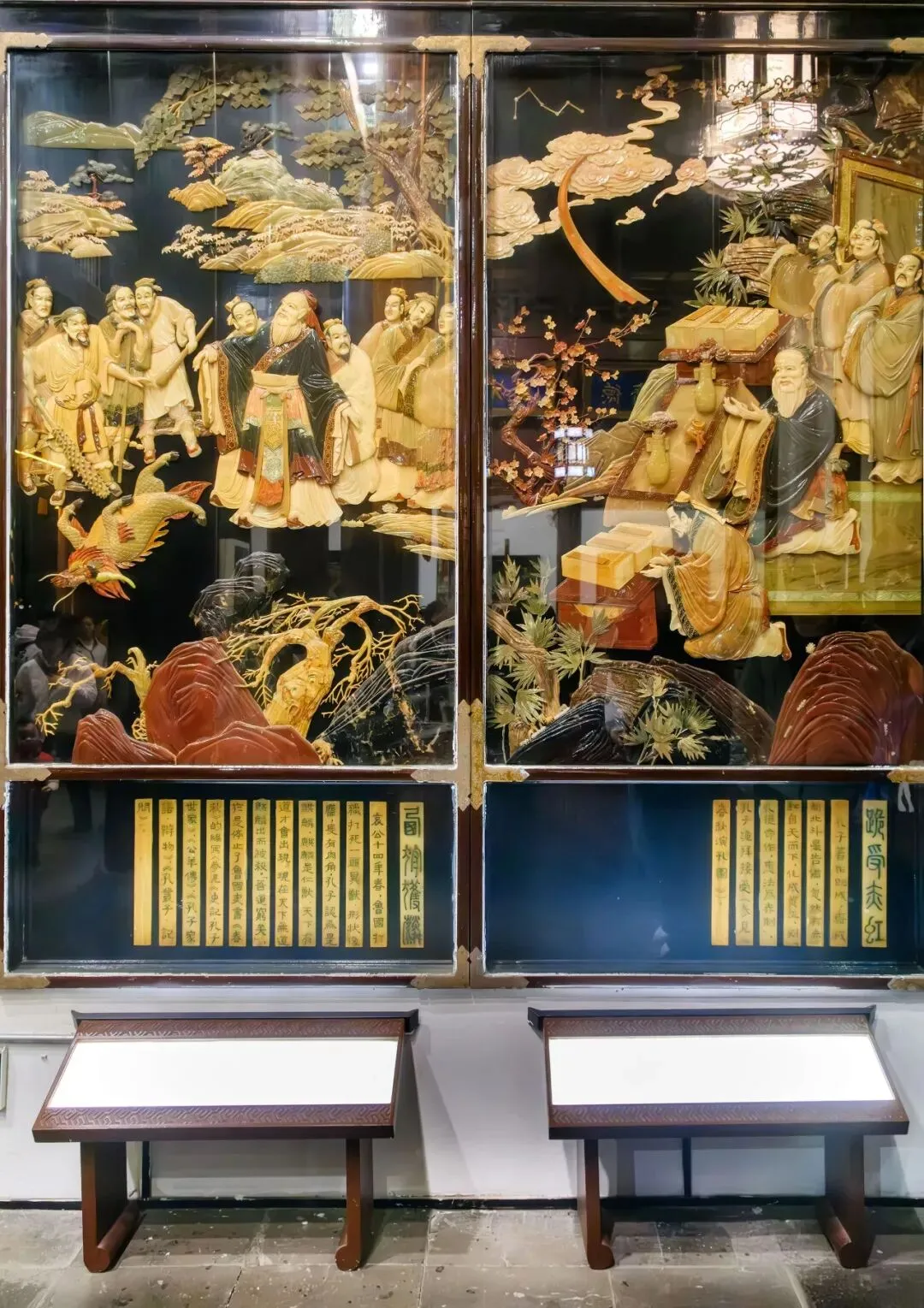 大成殿四周墙壁上,有浮雕镶嵌《孔子圣迹图》。共38幅,每幅高2.5米,宽1.3米。