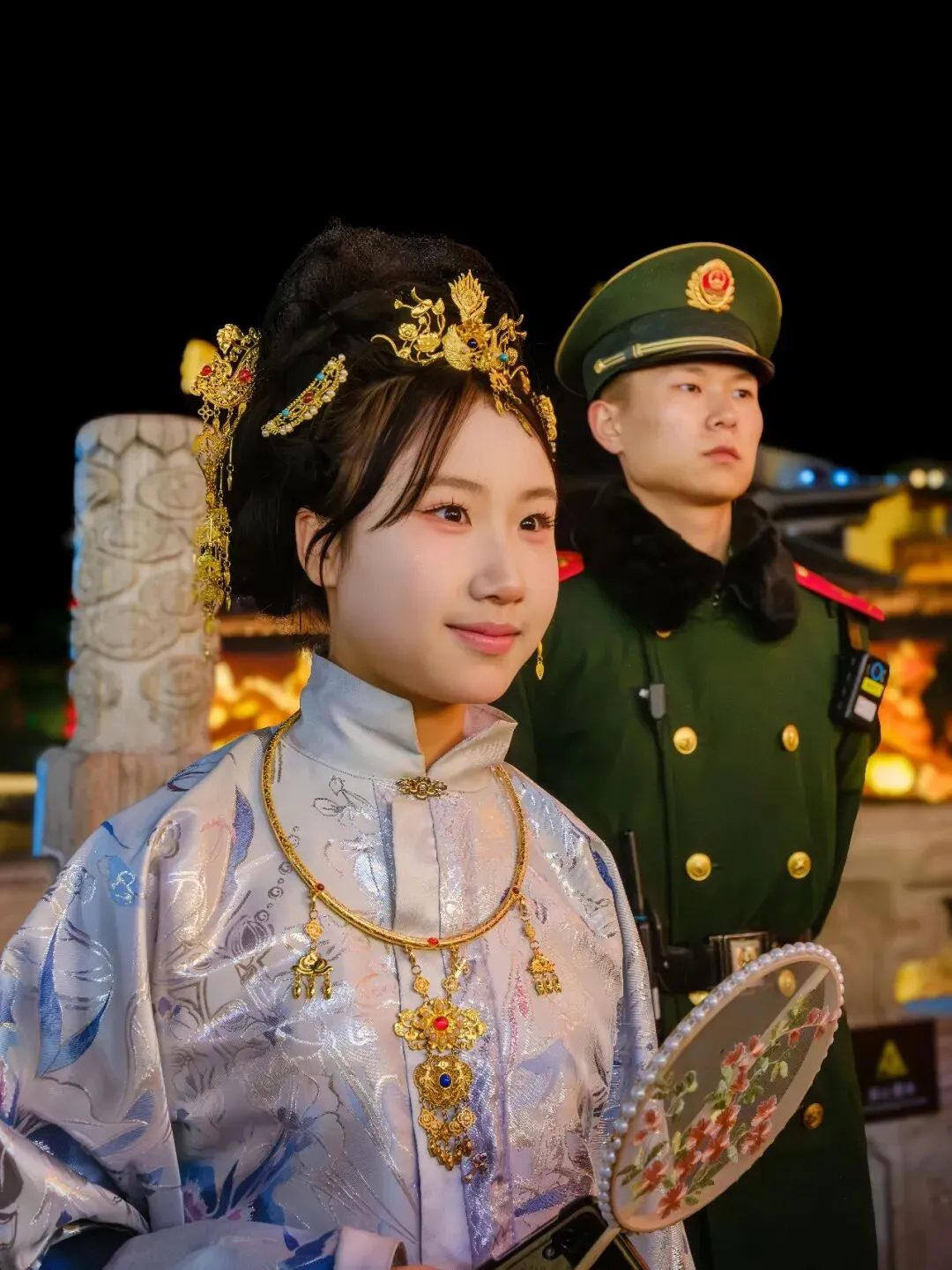 灯会区域中,有许多公安、武警等值守。询问得知,他们值班(站立)至每晚12点结束。辛苦了!