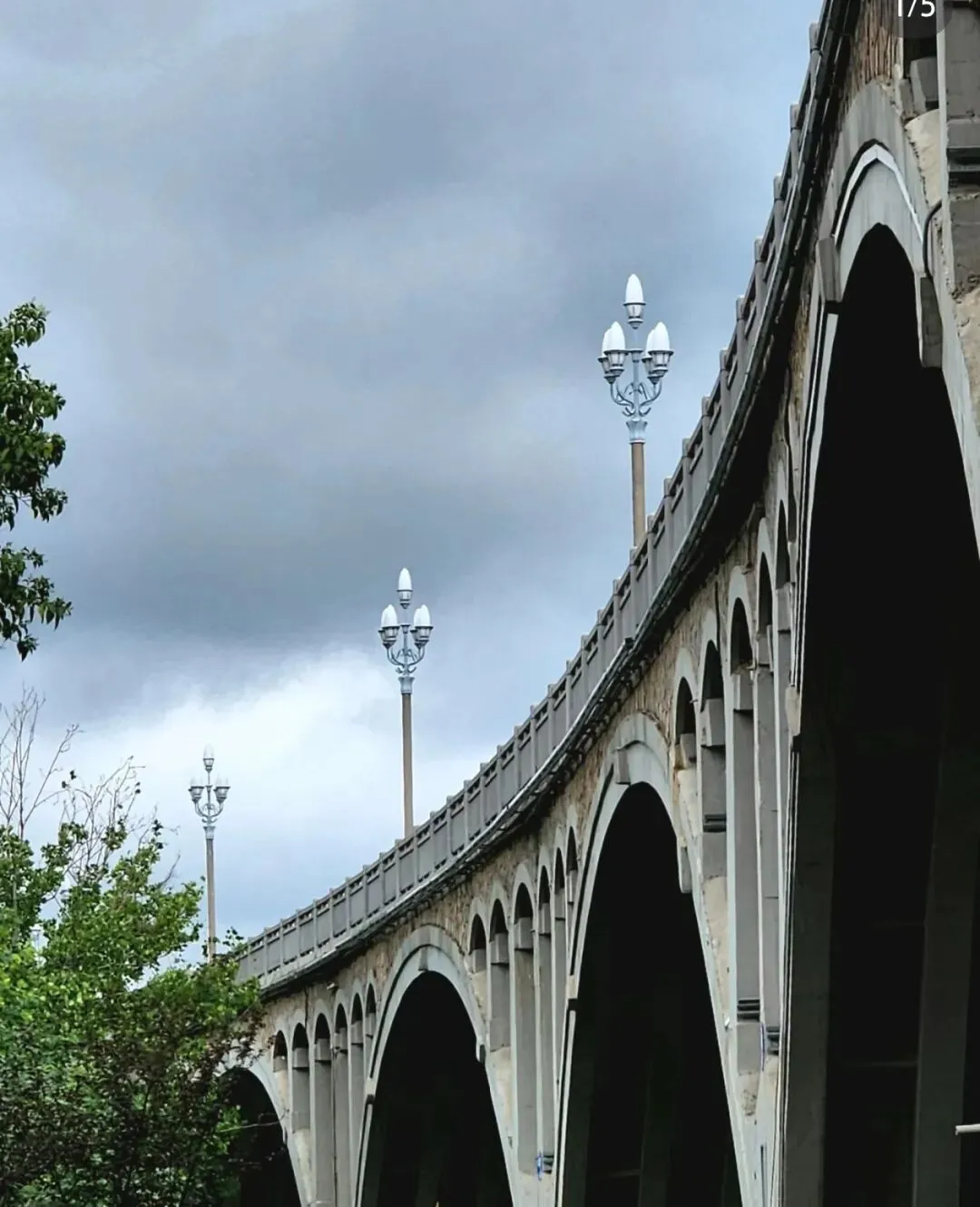 最让我惊喜的是,园内路灯完美复刻了南京长江大桥上的玉兰花灯,桥头堡的红旗元素搭配玉兰灯柱,复古感拉满,感觉可以原地拍民国大片!