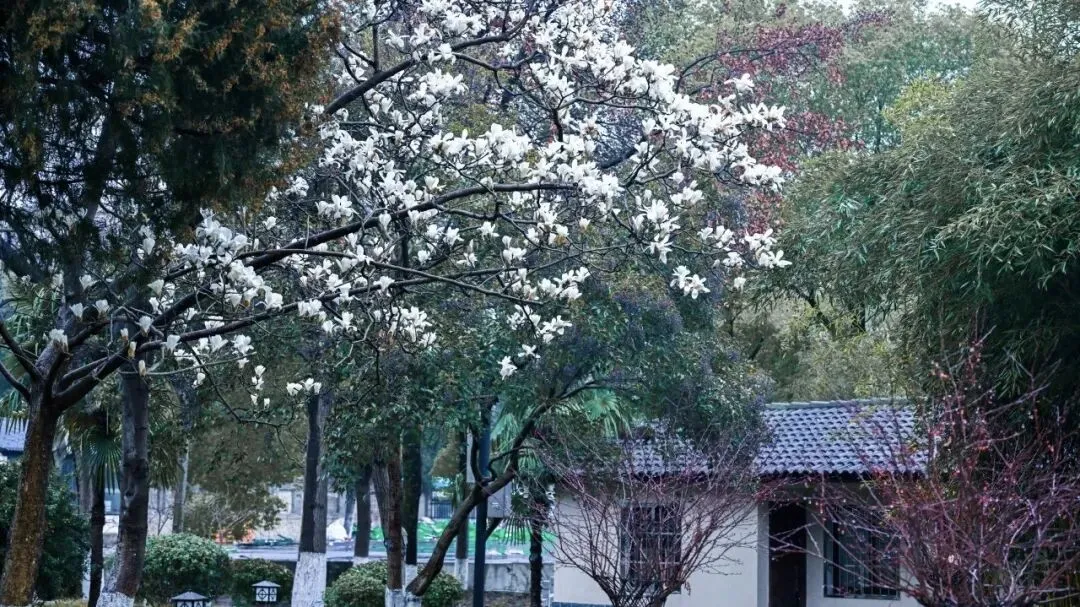 不用去人挤人的梅花山,这里的玉兰目前正值盛花期,搭配古典亭台楼阁和中式路灯,真的一秒穿越回金陵旧时光,关键还免费!
