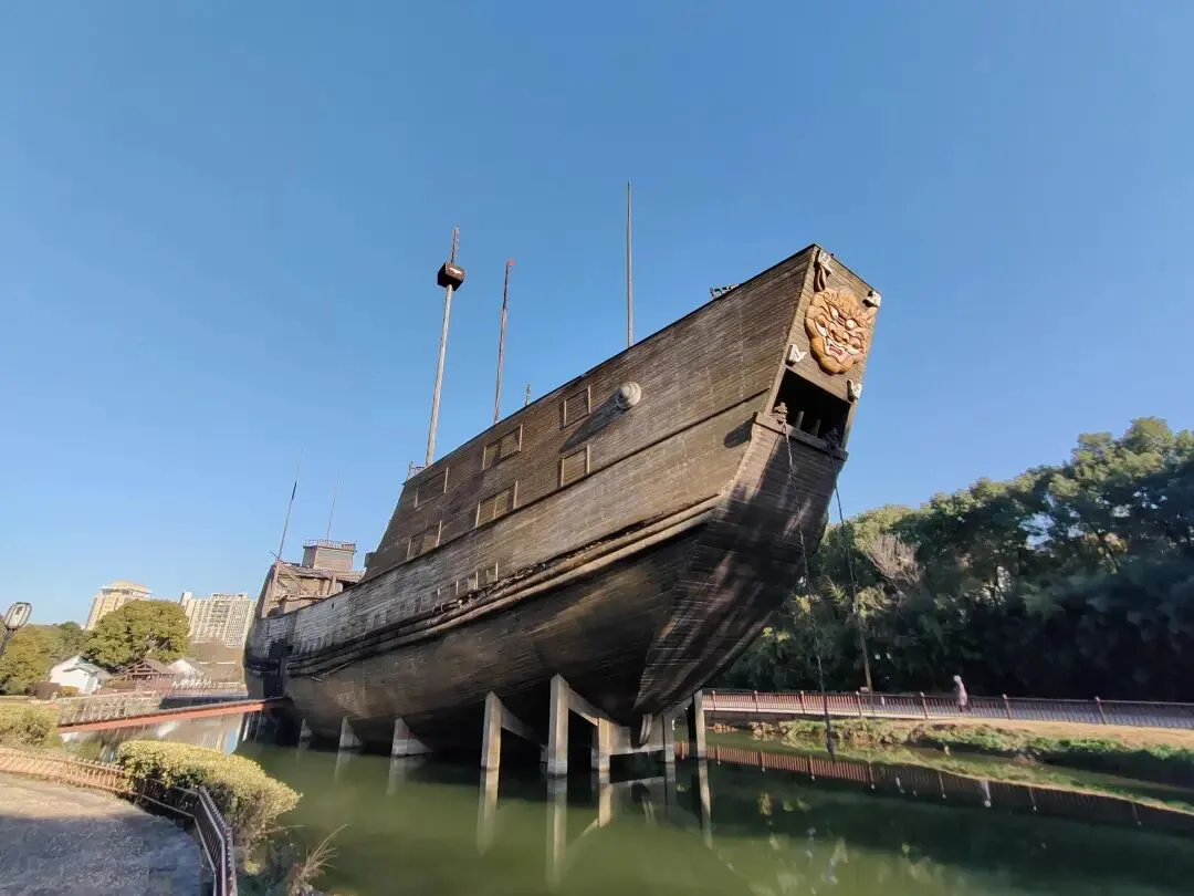 还有那些宝船部件雕塑,巨大的舵叶、复杂的榫卯结构,如果能亲手摸一摸那些仿制的质感,哪怕是水泥做的,也能在某种程度上,满足我对那个巨舰时代的触感想象。