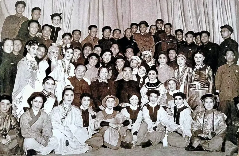 1956年4月12日,周恩来总理等中央领导者观看了《南冠草》,并与剧团演职人员拍下了一张珍贵的合影。