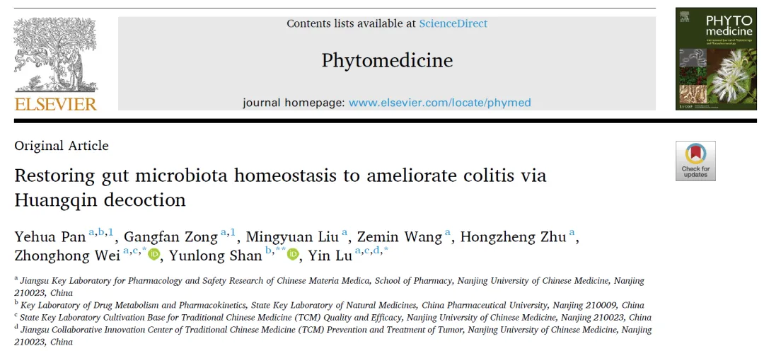 2026年2月,南京中医药大学团队在期刊《Phytomedicine》(IF:8.3)在线发表题为:Restoring gut microbiota homeostasis to ameliorate colitis via Huangqin decoction的高水平研究论文。