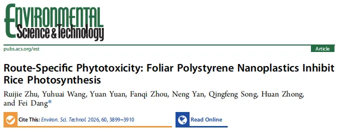 中国科学院南京土壤研究所 党菲团队 ES&T | 暴露途径特异性植物毒性:叶面聚苯乙烯纳米塑料抑制水稻光合作用!