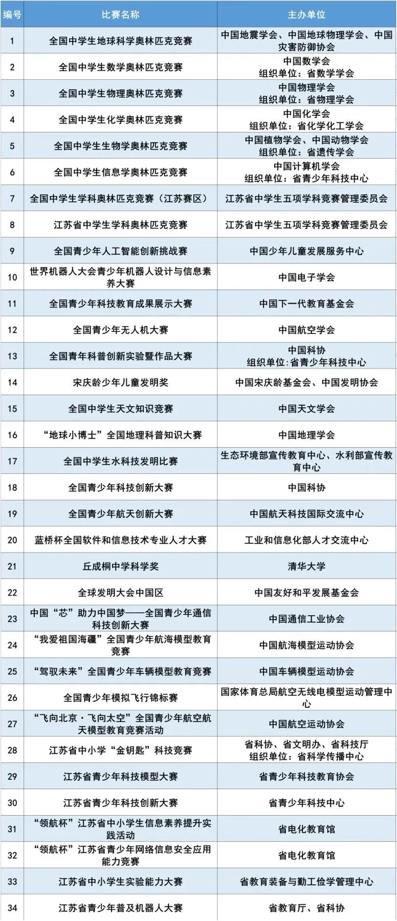 自然科学素养竞赛名单