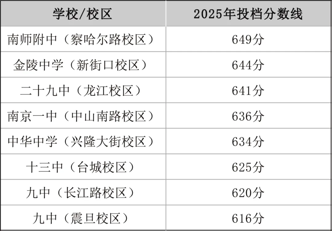 先看2025年南京部分热点高中的录取分数线(数据来源:南京市招考院官方发布):