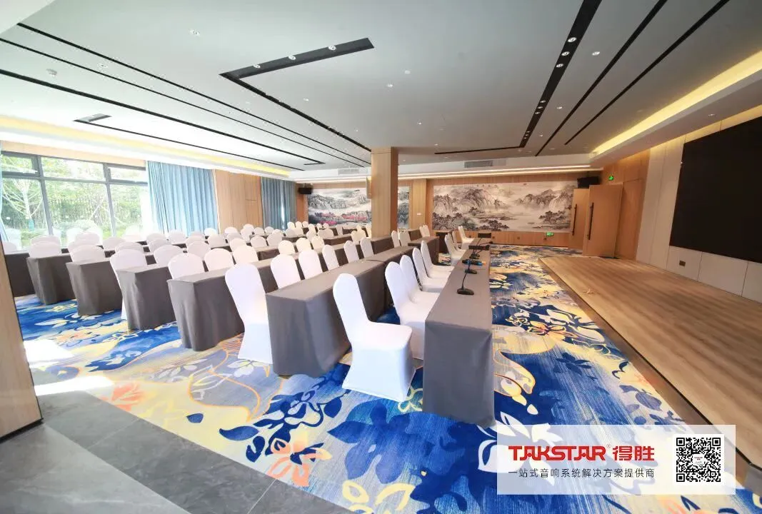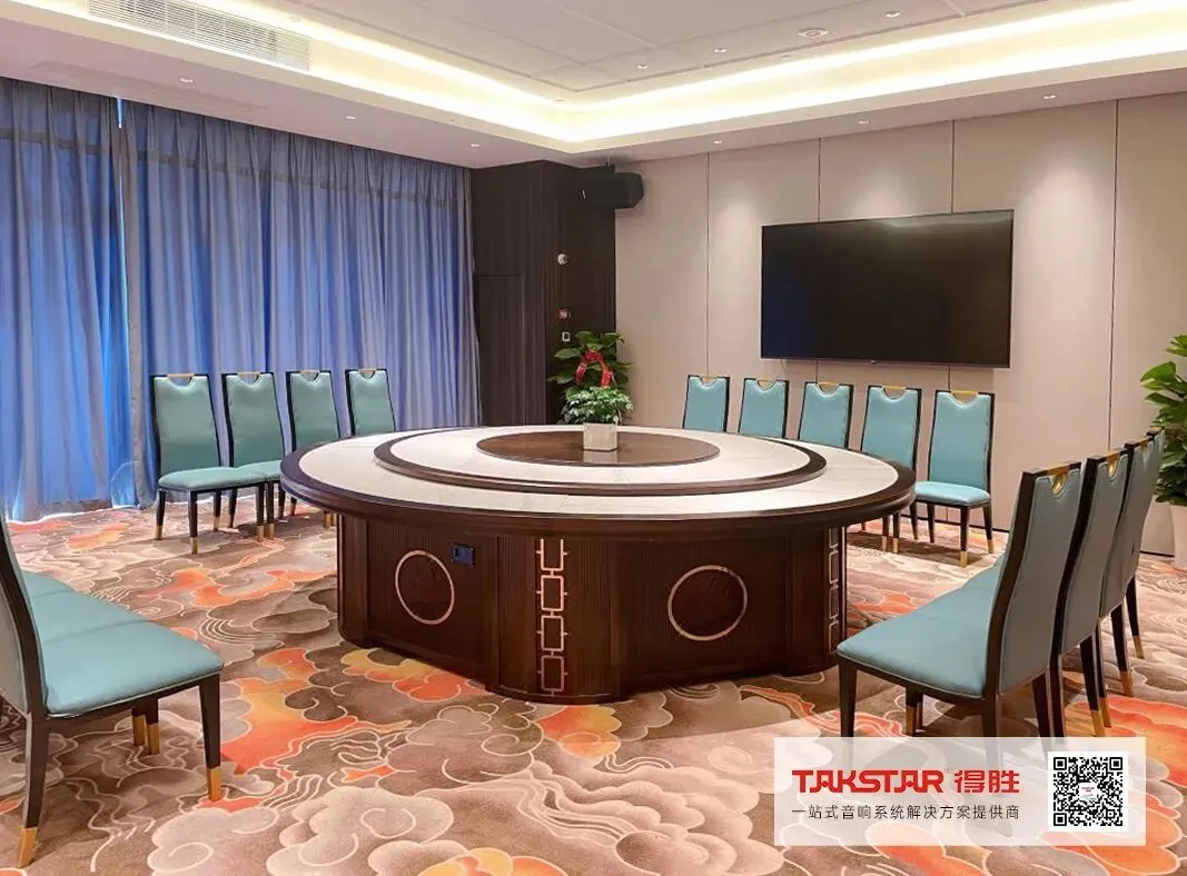 多功能厅是酒店日常举行活动及召开各类会议的场所,因此方案选用得胜EKL系列专业音箱搭配EA系列功率放大器,在保证低失真的前提下,拥有更大的声压级输出,真实地还原现场人声。拾音设备上,选用X4无线麦克风及G518无线麦克风,用于桌面式演讲、移动式发言互动。AM系列模拟调音台,配置FE-601移频器等其他周边设备,确保音响系统运行性能稳定,大程度改善声反馈现象。