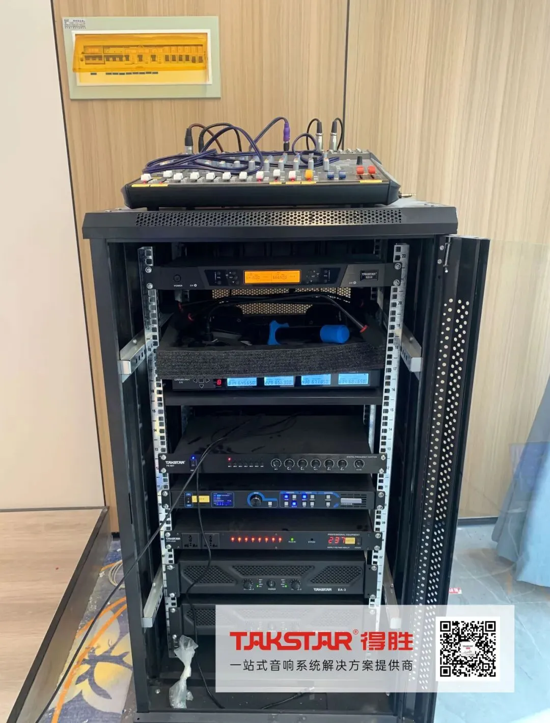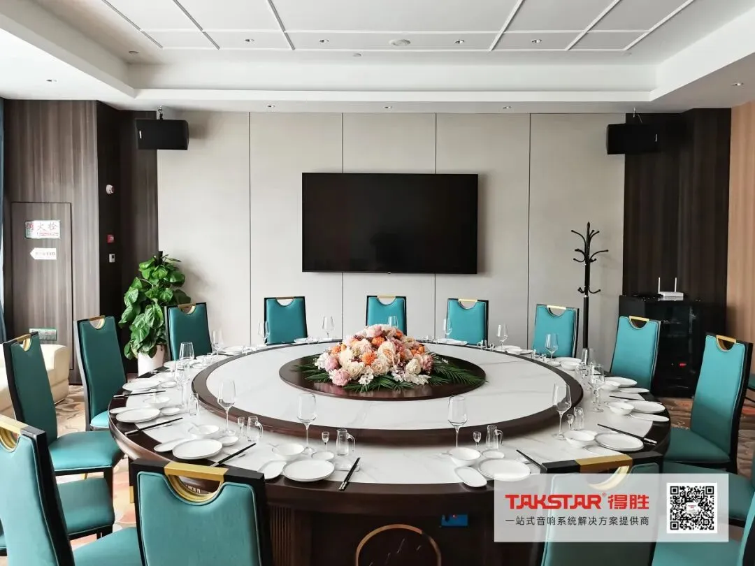 为让宾客享受更有氛围的餐饮环境,得胜(南京)专业技术团队选用EKL系列专业音箱搭配EA系列功放为宴会厅提供高保真度、声场均匀的扬声效果,AM系列模拟调音台、EPO-802N电源时序器等其他音频设备配置,声音各频率均能得到良好的体现,使乐器和人声表现上都能达到理想状态,能够满足宴会、婚礼现场、文艺演出等多元化使用。