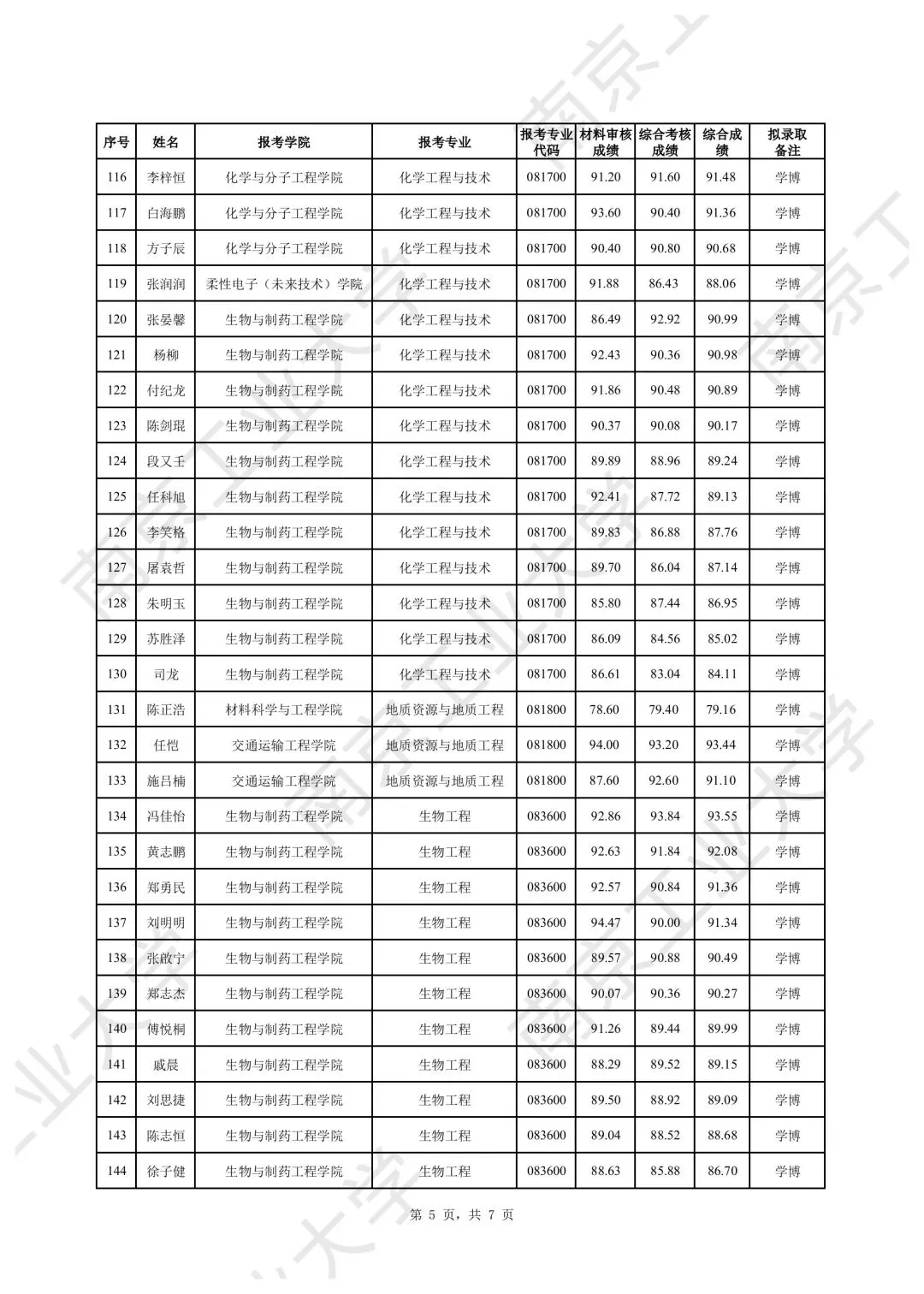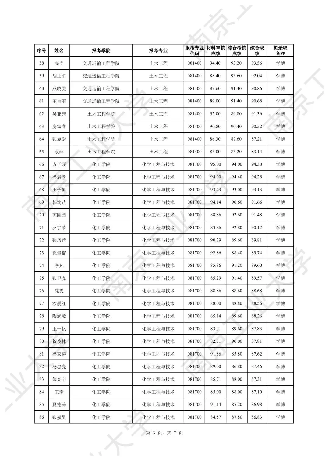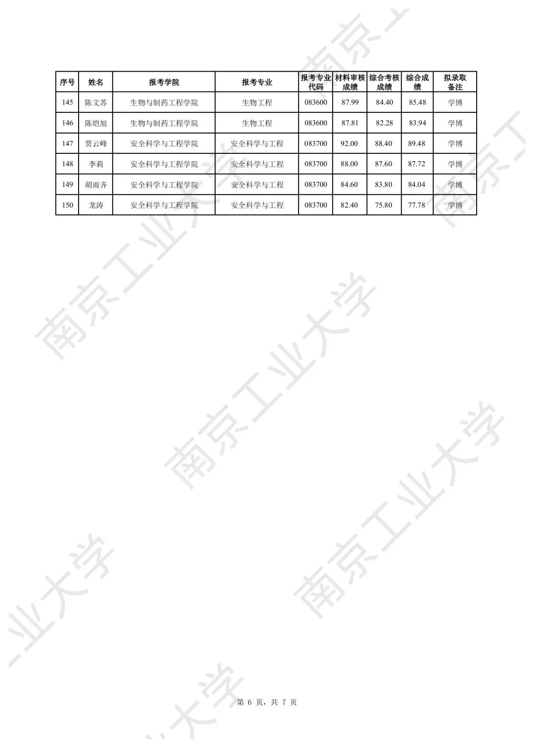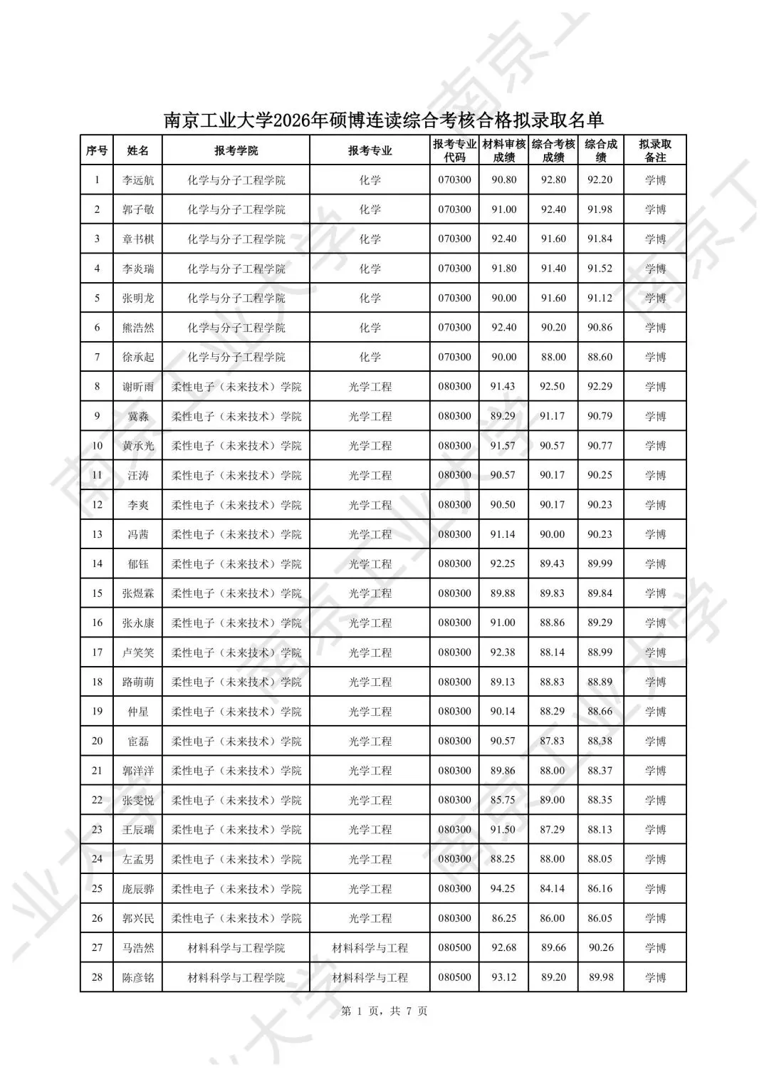 南京工业大学2026年硕博连读综合考核合格及拟录取名单