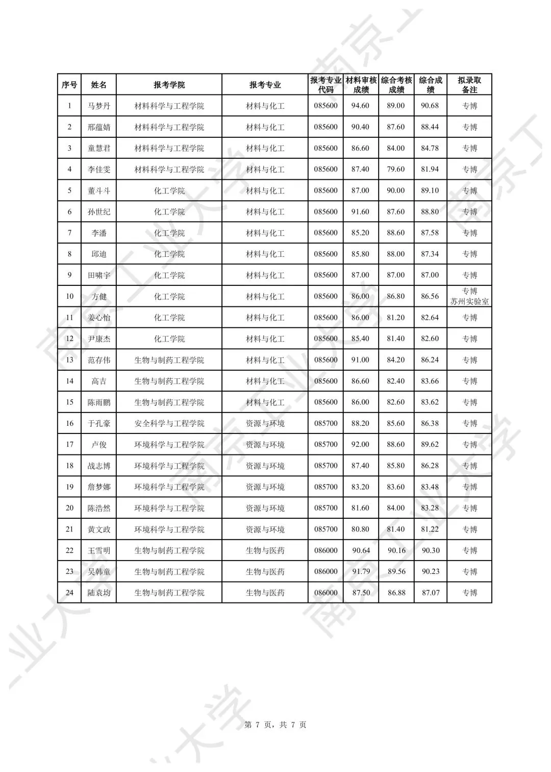>南京工业大学2026年硕博连读综合考核合格及拟录取名单