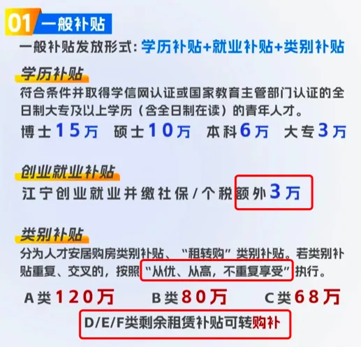 • 创业就业补贴:江宁创业就业并缴社保/个税,额外3万;