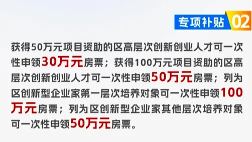 专项补贴:符合条件的可一次性申领30万-100万元不等的房票2、房价额外优惠,直接抵扣房款