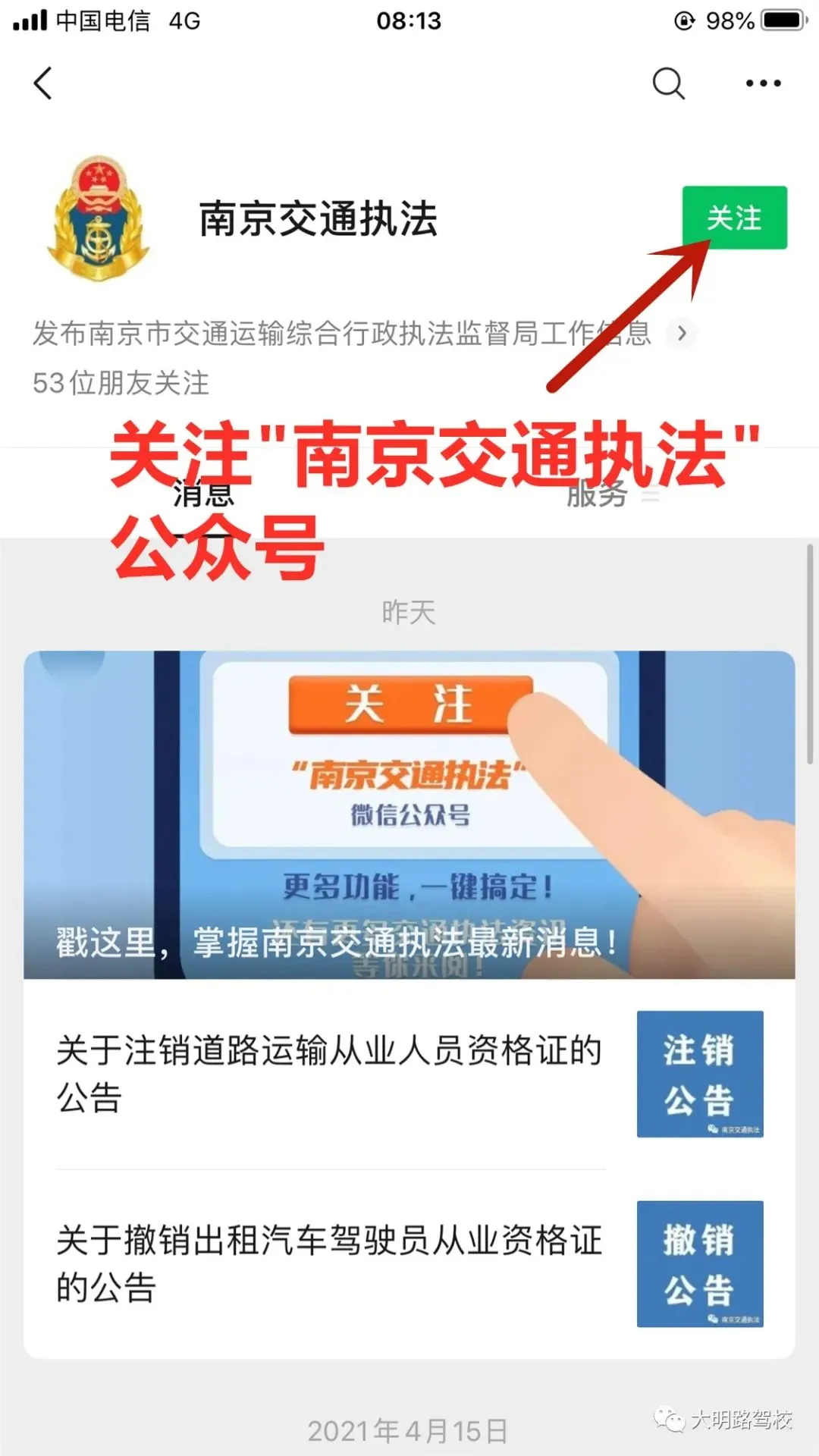 1.关注“南京交通执法”公众号