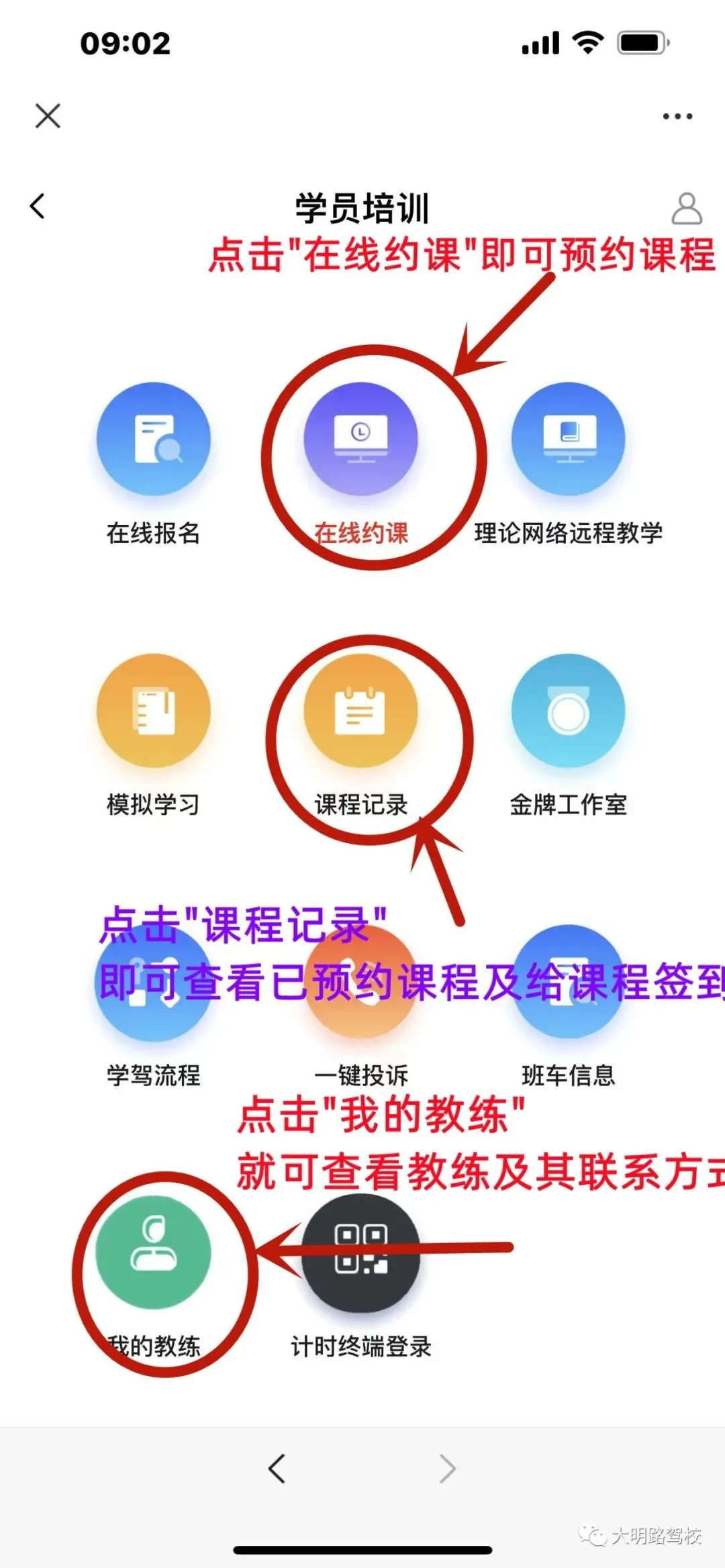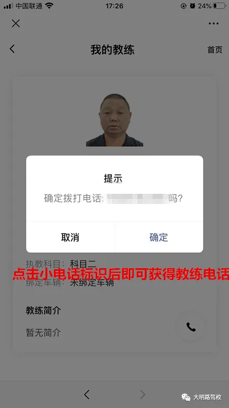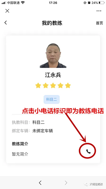 点击小电话标识即可拥有教练电话