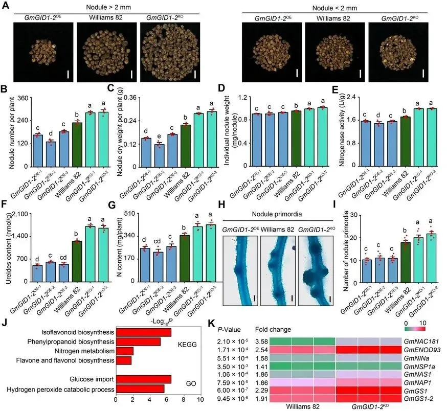 图2 敲除GmGID1-2增强大豆根瘤固氮