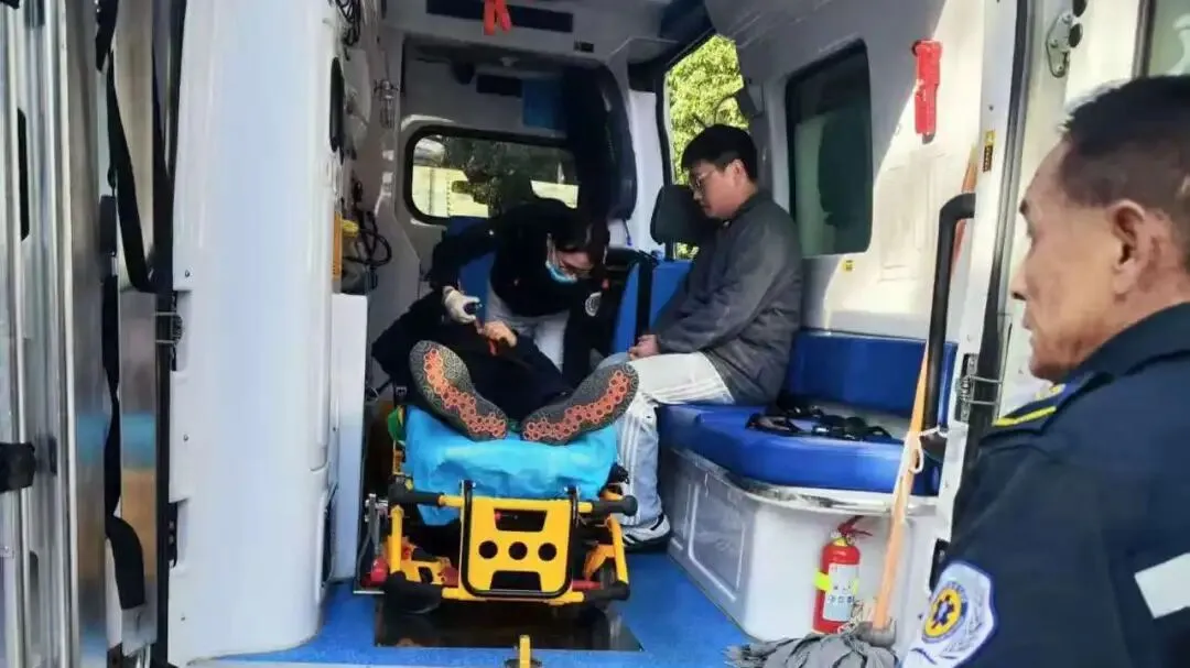 多轮心肺复苏后,120急救人员赶到。老人被紧急抬上救护车,送往医院。