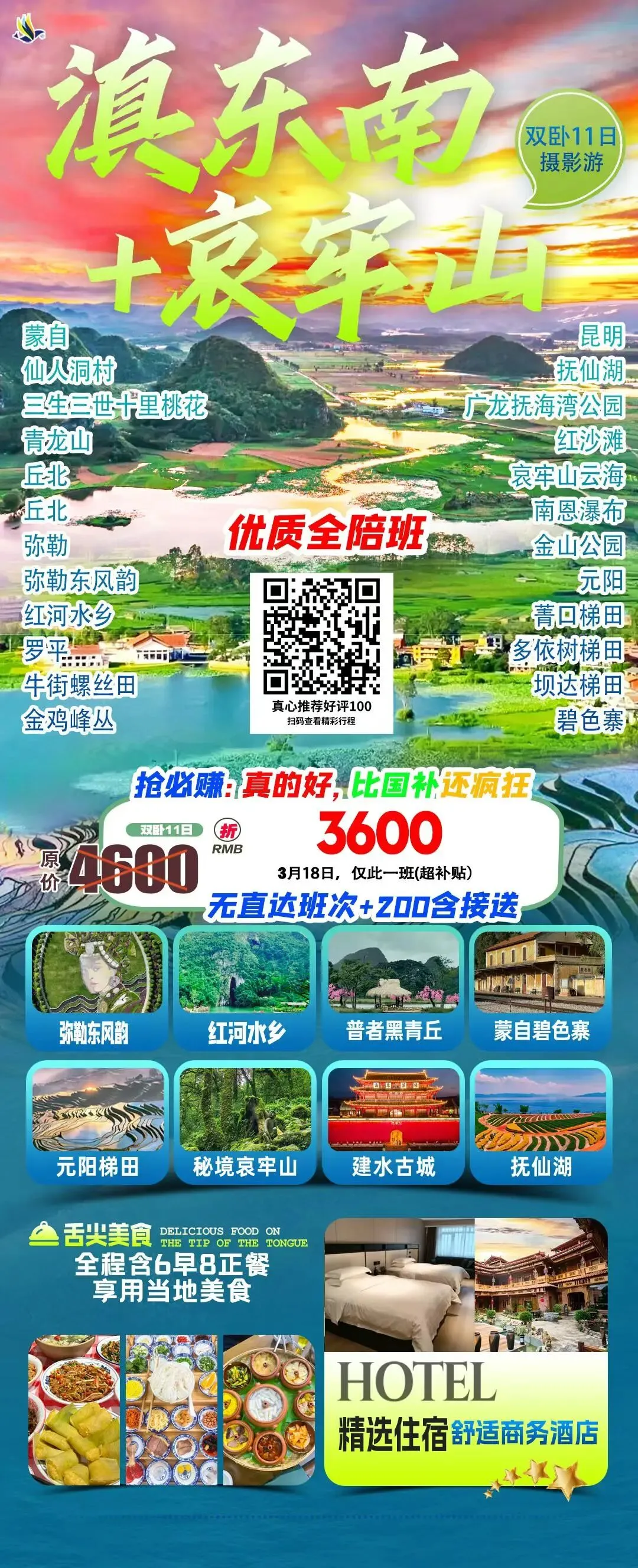 >【铁发全陪班】南京出发滇东南+哀牢山超级特价仅 3600元,3月18号出发