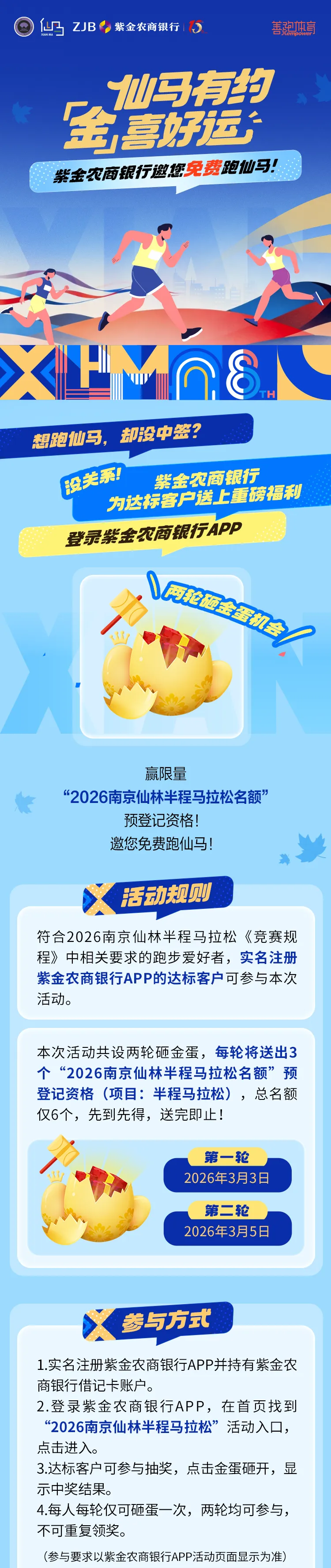 >紫金农商银行邀您免费跑2026南京仙马!