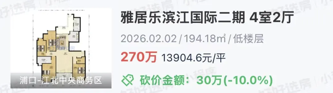 雅居乐滨江国际,曾经4万多的大户型,如今194㎡的大户型,1.39万/㎡成交。