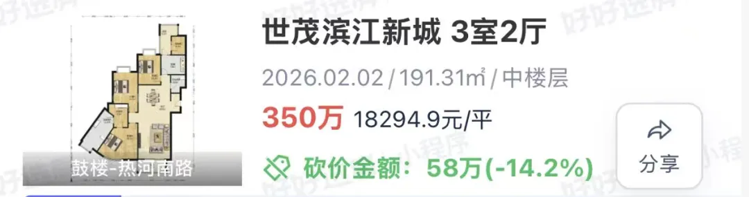 海珀星晖,曾经5~6万的大平层,如今230㎡的大户型,3.2万/㎡成交。