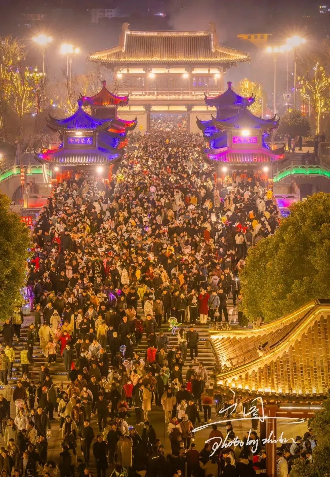 那个太平古城啊, 很多人说它可是花了大价钱盖的, 三十八个亿呢, 都是用榫卯结构建的, 都没有用一根钉子啊, 真是让人很惊叹呢, 里面有一百二十八栋房子, 都是明清时候的风格呢, 那个缙福楼啊, 足足有三十三米高呢, 算是那里的一个标志建筑了, 很多人都跑去看呢, 白天的时候去里面转转啊, 走在青石板路上, 看看那些白墙黛瓦的房子, 袁家湾老街那里, 还能吃到好多当地的小吃呢, 晚上就更好看了, 灯火通明亮一片, 城楼上啊, 廊桥上啊, 都亮着光呢, 特别漂亮, 还有古戏台上面呢, 有很多老的节目表演, 感觉就像回到了古代一样, 特浪漫的, 而且这里还不要门票钱呢。