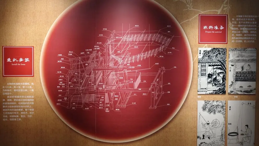 依托“通经断纬”核心技术,由两位织工协作操作大花楼织机,每日仅能织造数厘米,全程手工完成的技艺至今无法被机器替代。2009年成功入选联合国人类非物质文化遗产代表作名录。
