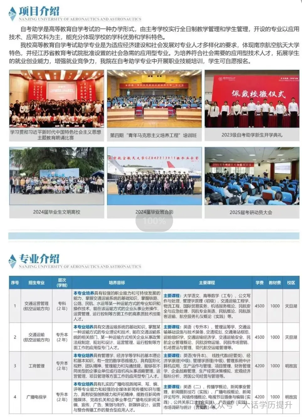 如果你正在考虑报考专接本和高起本全日制小自考,不妨参考以下建议:南京航空航天大学在江苏院校中排名第三,在全日制自考领域更是独占鳌头 ,追求名校光环的同学,南航无疑是理想之选。其地理位置优越,办学历史悠久,校区资源丰富且能与统招生共享。从校园环境到教学质量都出类拔萃。除非你想选择垂直类院校或专业不匹配,否则南航绝对是首选。