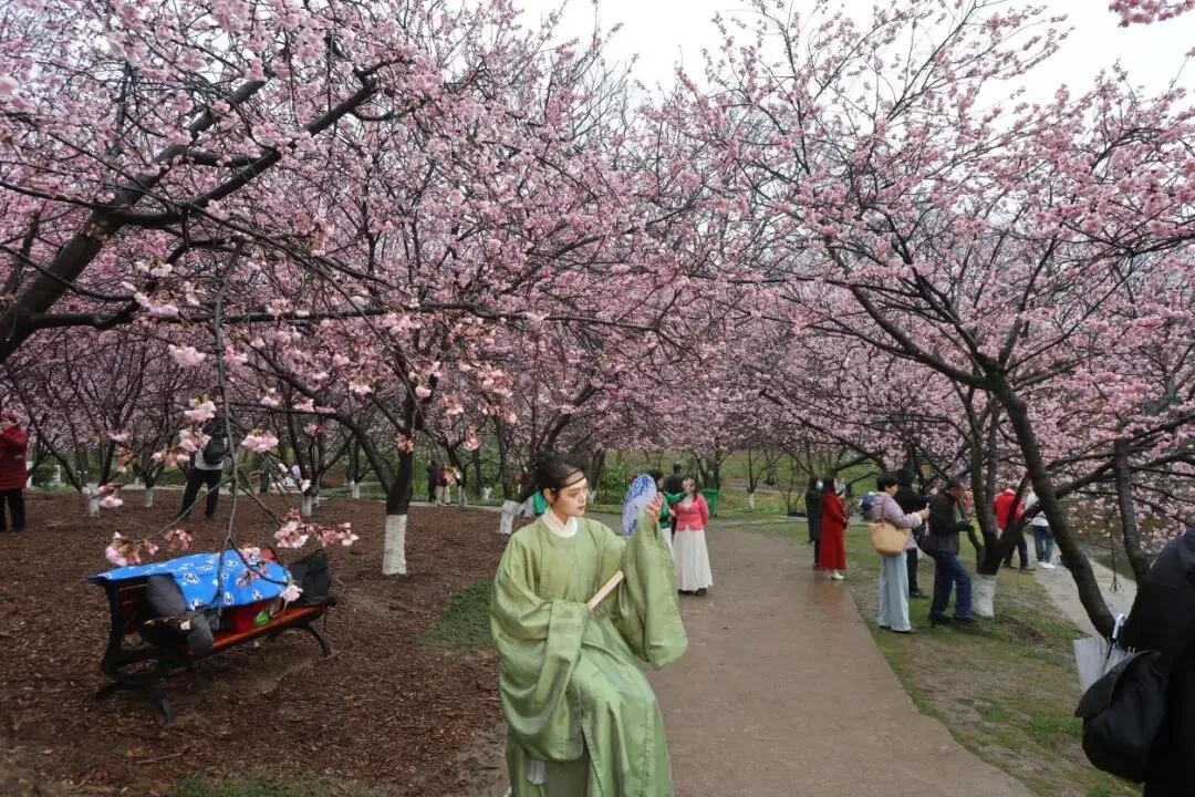 目前,椿寒樱已开放约90%,正式进入最佳观赏期。樱花素有“樱花七日”之说,椿寒樱虽花期稍长,可赏十天左右,但最美盛景只在当下。这一波限定粉色浪漫,错过便要再等一整年。