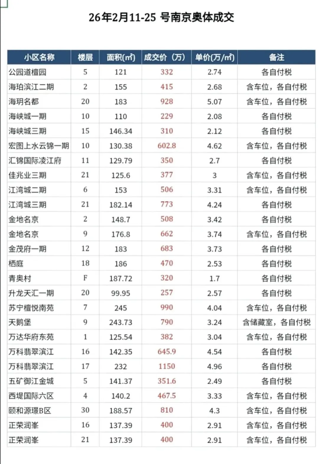2026年2月11-25日,南京建邺区存量房成交数据统计