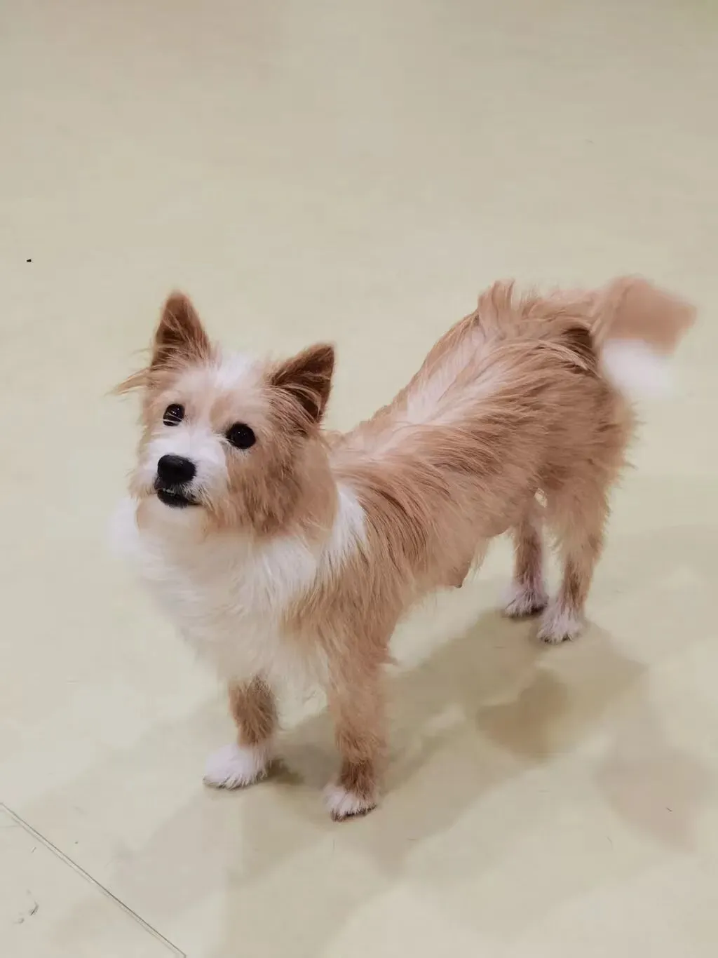但它不懂什么叫“被抛弃”。它只知道:有人来了,要开心;有人伸手,要蹭上去;有尿垫,要去那里上厕所——因为以前的主人教过它,好狗狗要讲卫生。