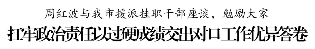 2月27日,江苏省南京市委书记周红波与南京市参加对口支援、协作、合作工作的援派挂职干部座谈,代表市委市政府向广大援派挂职干部及家属表示衷心感谢和诚挚问候,与大家共同谋划新一年工作。
