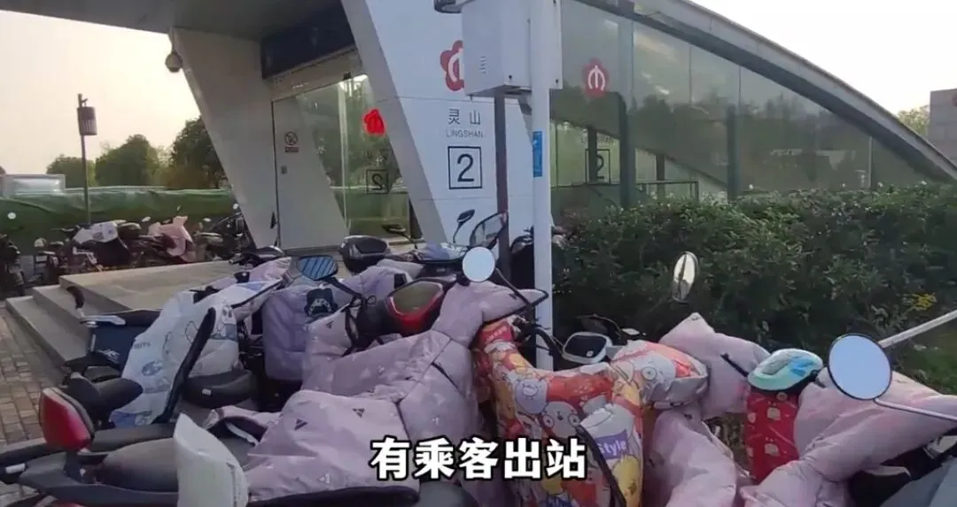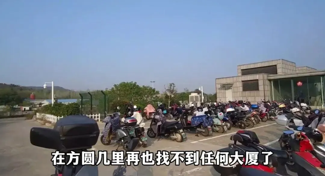 不过在地铁站的不远处有唯一的一栋大厦,这栋大厦就是南京地铁运营大厦。看到除了这栋大厦之外,在方圆几里再也找不到任何大厦了。还看到这个地铁站出入口停了很多电动车,应该是附近的一些村庄可能由于距离这个地铁站太远了,就不得不坐电动车或者是摩托车来这里搭地铁去上班。